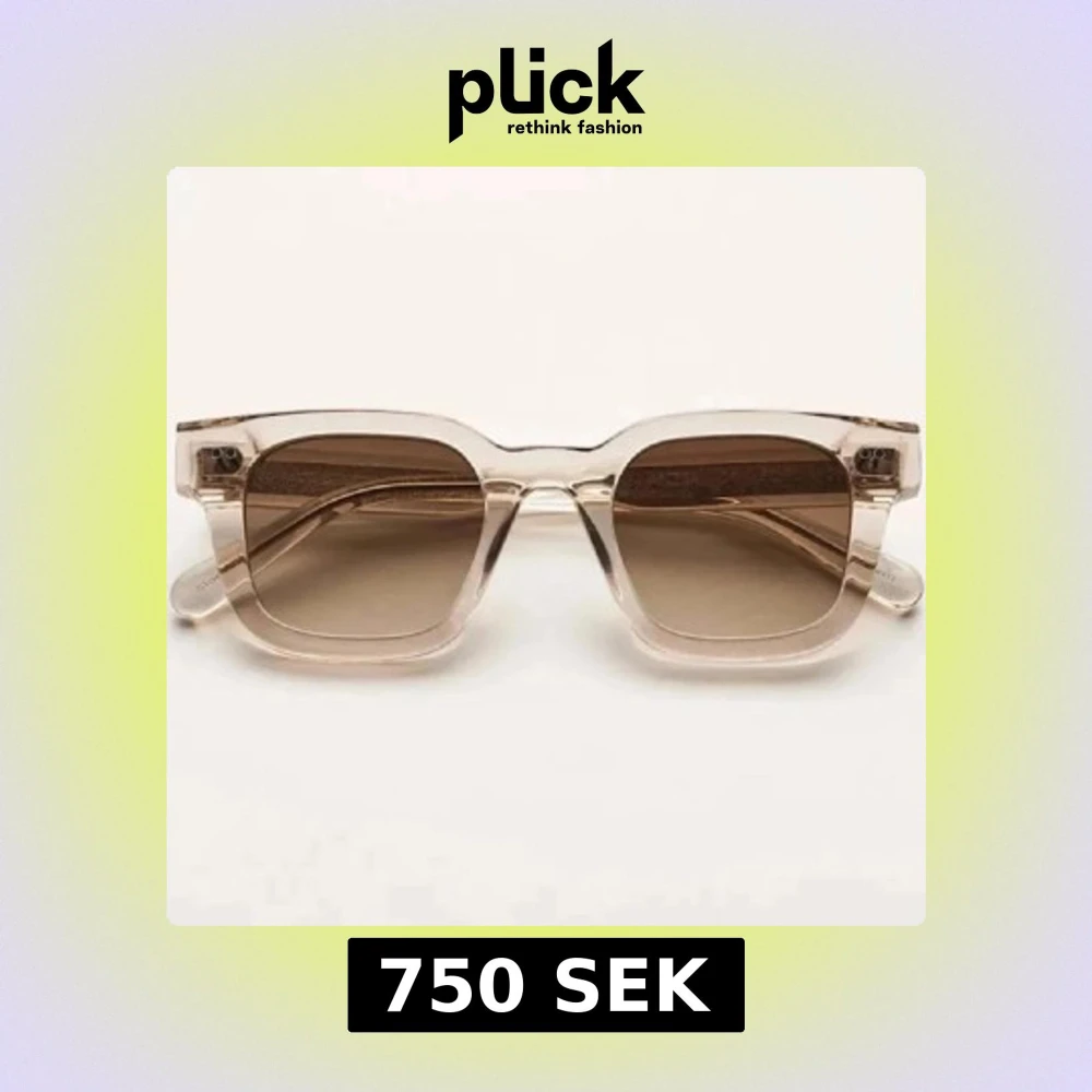 Stilrena solglasögon från Chimi med transparent beige båge och fyrkantig form. Glasen är tonade i brunt och bågarna är i plast. Perfekta för en trendig look.