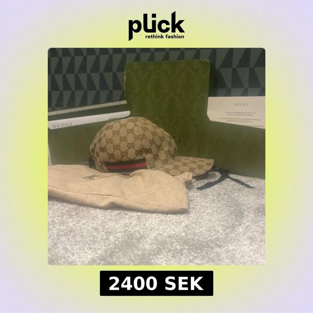 Snygg beige keps från Gucci med det ikoniska GG-mönstret. Kepsen har en röd och grön randdetalj och justerbart spänne baktill. Perfekt för att ge din outfit en lyxig touch äktahets papper finns och kvitto är köpt på hemsidan nypris 3200kr 2400kr är ett väldigt bra pris för att kepsen är i ett väldigt bra skick priset kan diskuteras