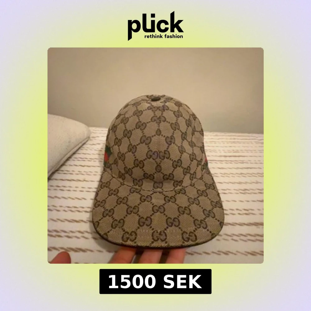 Snygg beige keps från Gucci med det ikoniska monogrammönstret. Kepsen har en justerbar rem baktill och detaljer i grönt och rött på sidan. Perfekt för att ge din outfit en lyxig touch. dustbag finns !