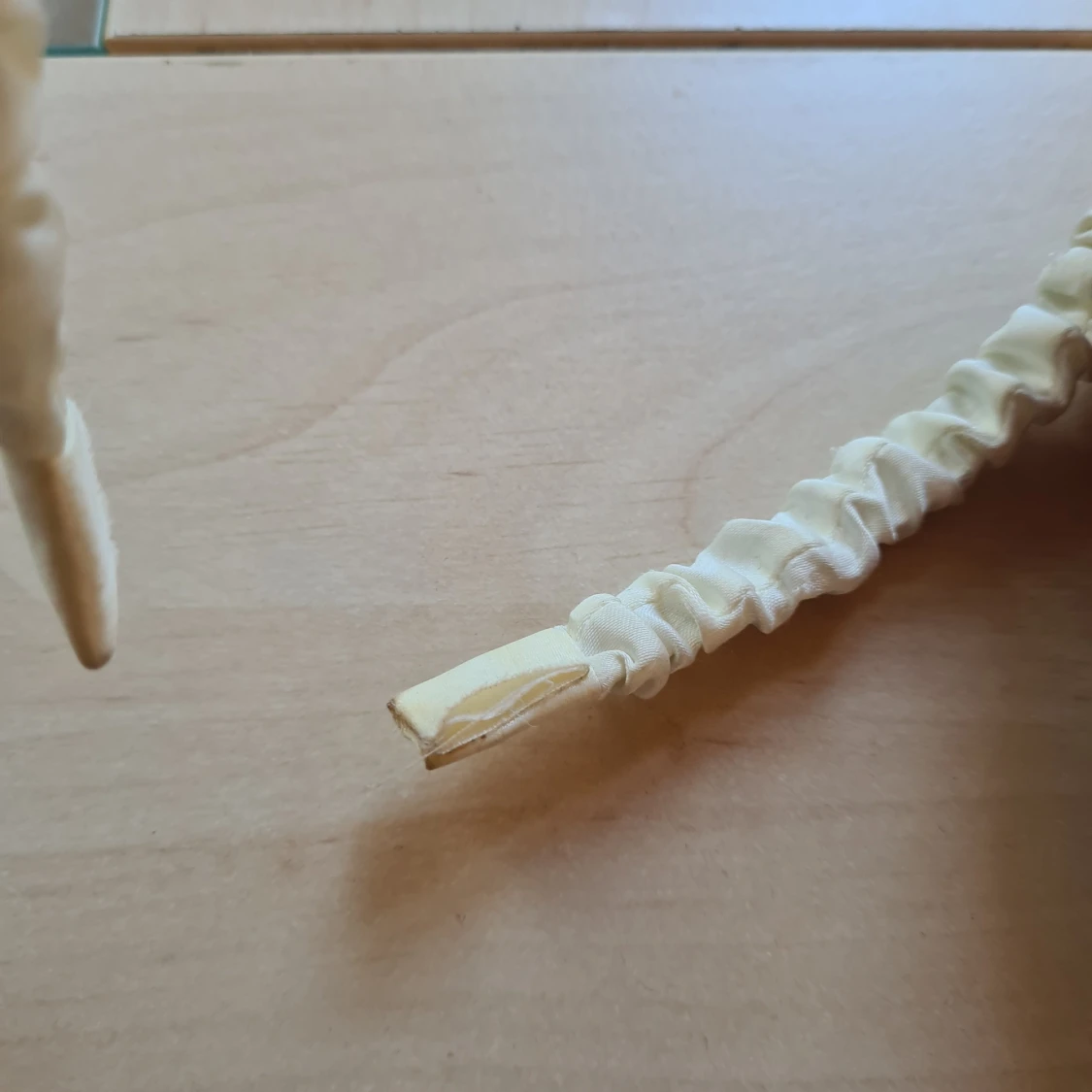 Beige scrunchie-diadem i satinlook