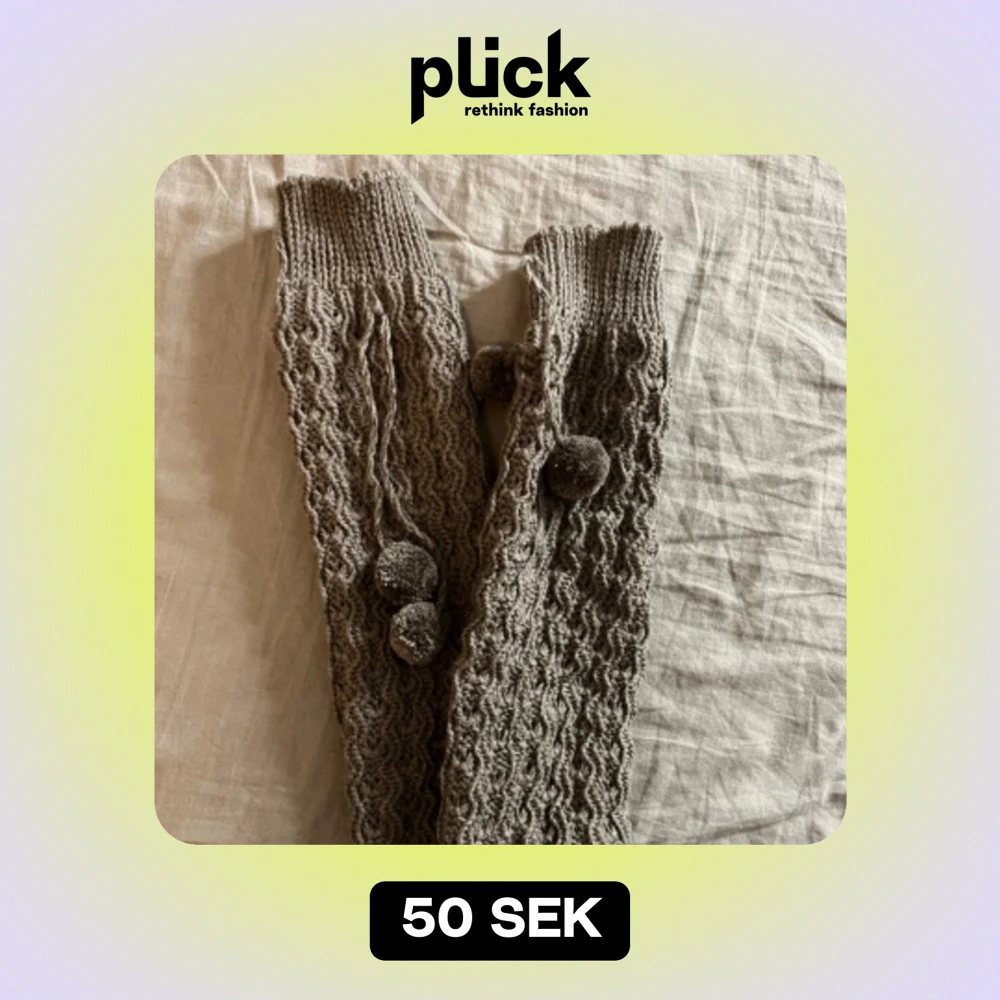 Mjuka och varma benvärmare med pompoms, de är gråbruna i färg. Ganska små
