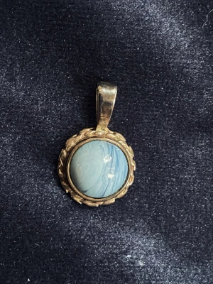 Liten silverberlock med blå sten och stämpel 925