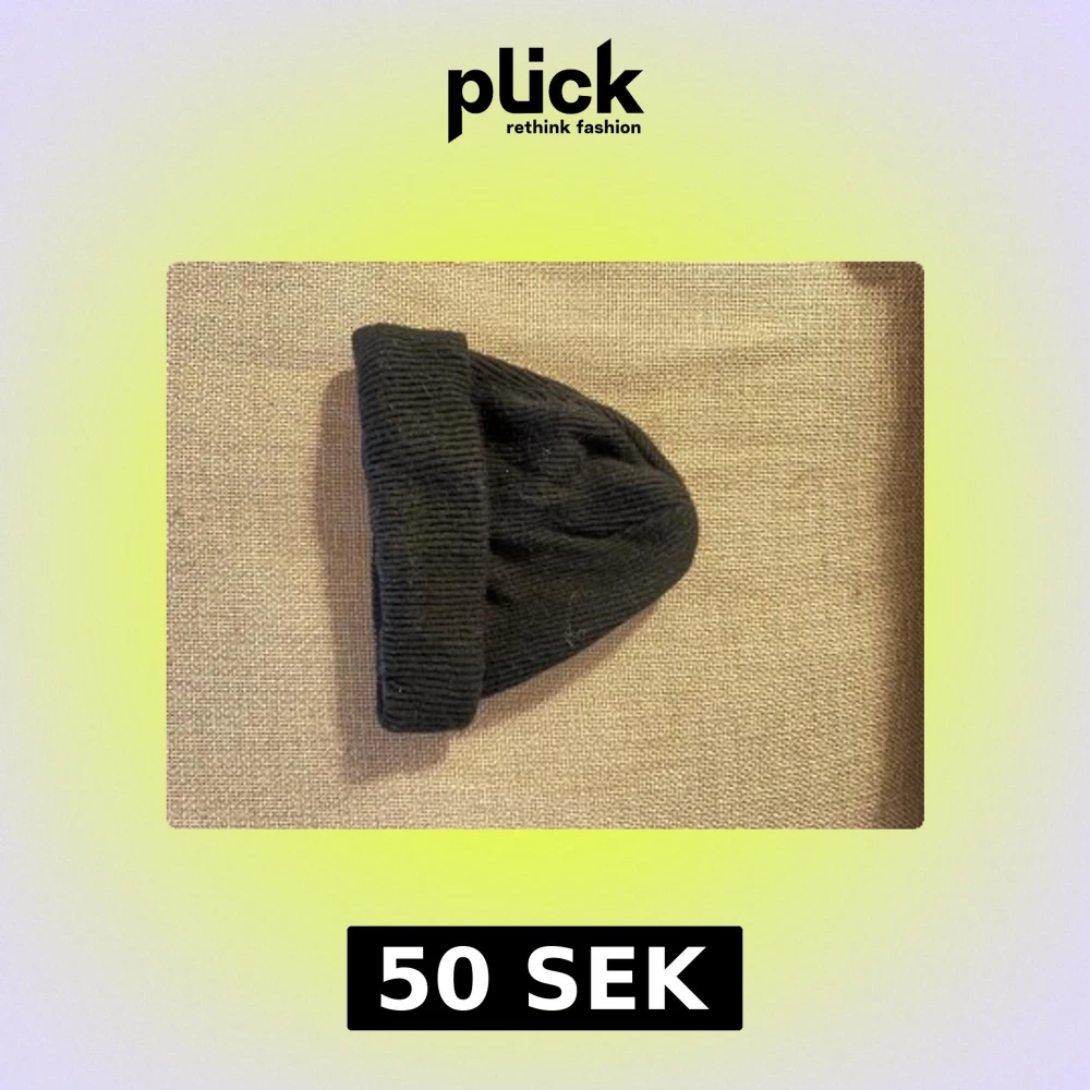 En stilren svart mössa från Bik Bok med ribbad struktur och uppvikt kant.