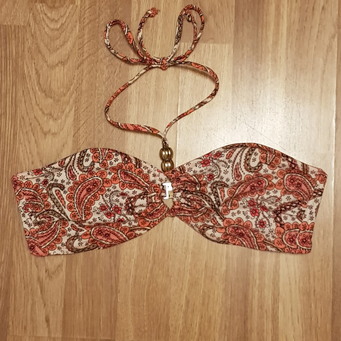 Bikini överdel vit ned rosa blommor strl 42(C,D?) Från h&m Finns plats för att sätta i kuddar om man vill tyvärr finns inga i