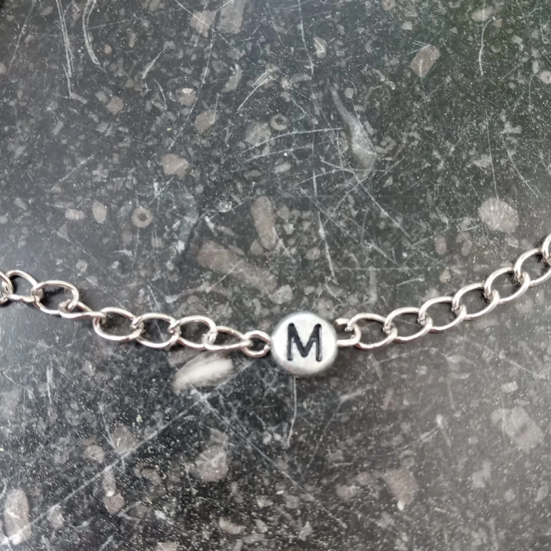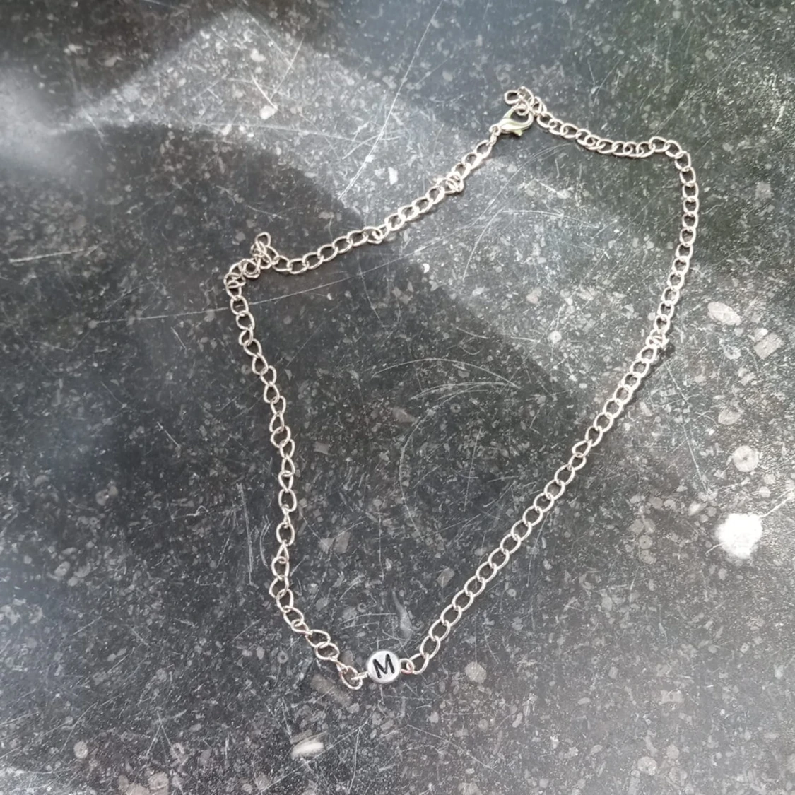 Namnhalsband med bokstaven M på. Egengjort och i nyskick, säljer då det inte andvänds så mycket ☺️