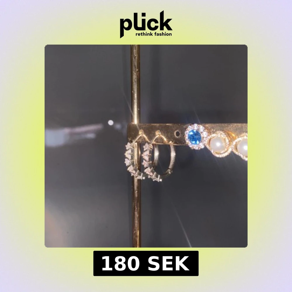 Säljer ett par örhängen i silverfärg – ett par hoops med gnistrande stenar runt hela ringen 🩵 de är från snö of Sweden