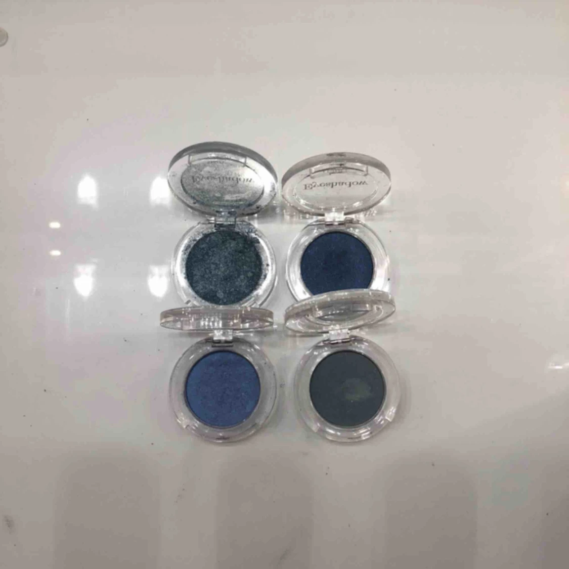SÄNKT PRIS!! 4st blå ögonskuggor från Lindex. Endast använda en gång under halloween. Alla för 90kr eller 1 för 30kr. Frakten ligger på 18kr eller mötas upp i närheten av Bålsta.