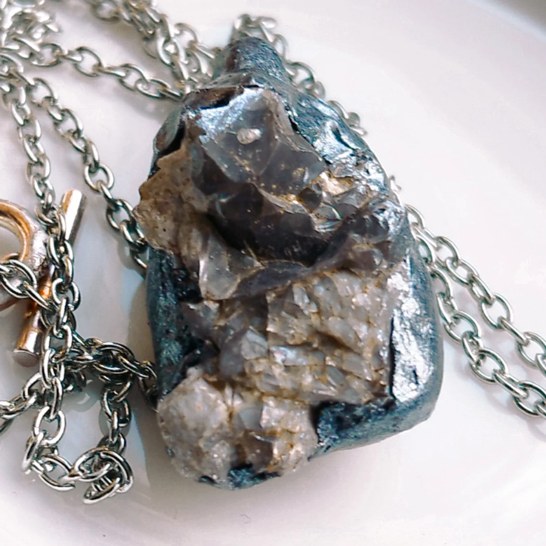 Smycke i metal imitation đâš GrĂ„ Bergslagsten âš Kedjan Ă€r nickelfri! ca 28 cmâš Smycket Ă€r ca 3 cm L & 2cm Bâš Frakt tillkommer âșïžâš