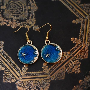 Handgjorda örhängen med guldpläterad berlock och nickelfria krokar 🌙 På min profil finns fler örhängen med berlocker i flera andra storlekar, färger och former! 🪐 Köp 1 par för 40kr, 2 par för 70kr, 3 par för 100kr! Frakt på 15kr tillkommer.