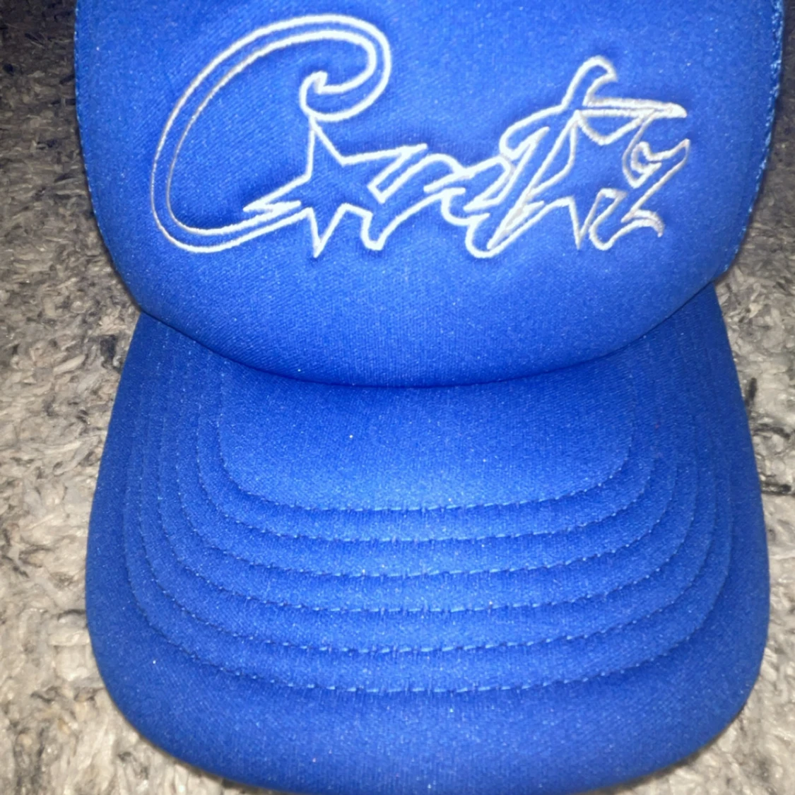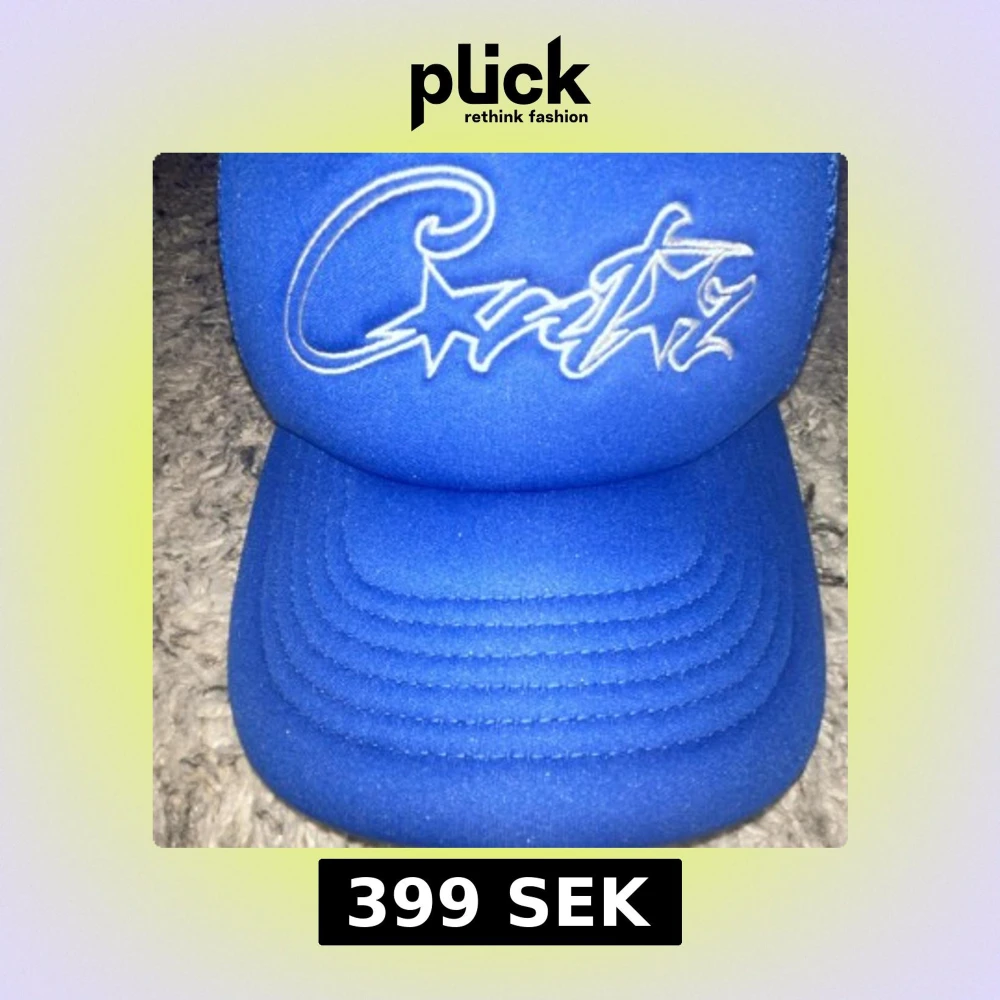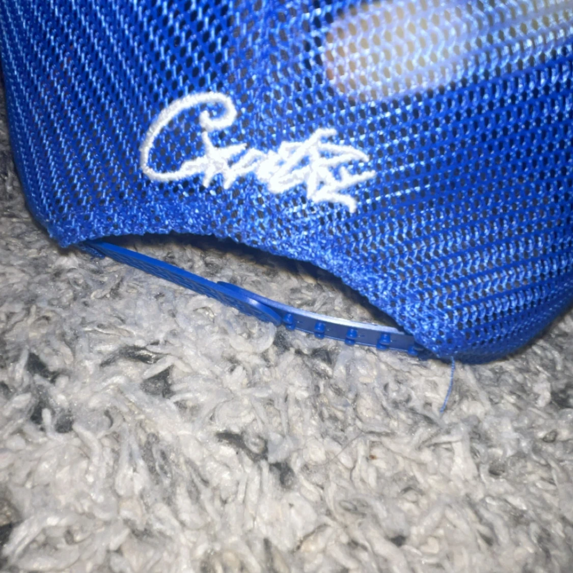 Säljer en blå truckerkeps från Corteiz med vit broderad logga framtill och baktill. Kepsen har meshpaneler för extra ventilation och justerbar snapback. Perfekt för dig som vill sticka ut med streetwear-vibe.