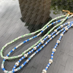 Super fina handgjorda pärlhalsband i blå och gröna toner skriv till mig om ni vill att jag ska göra med några andra färger så löser jag! Gratis frakt vid köp av en tre halsband eller armband!💙 skickar gärna med gratis vid köp och annat plagg