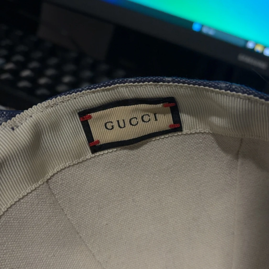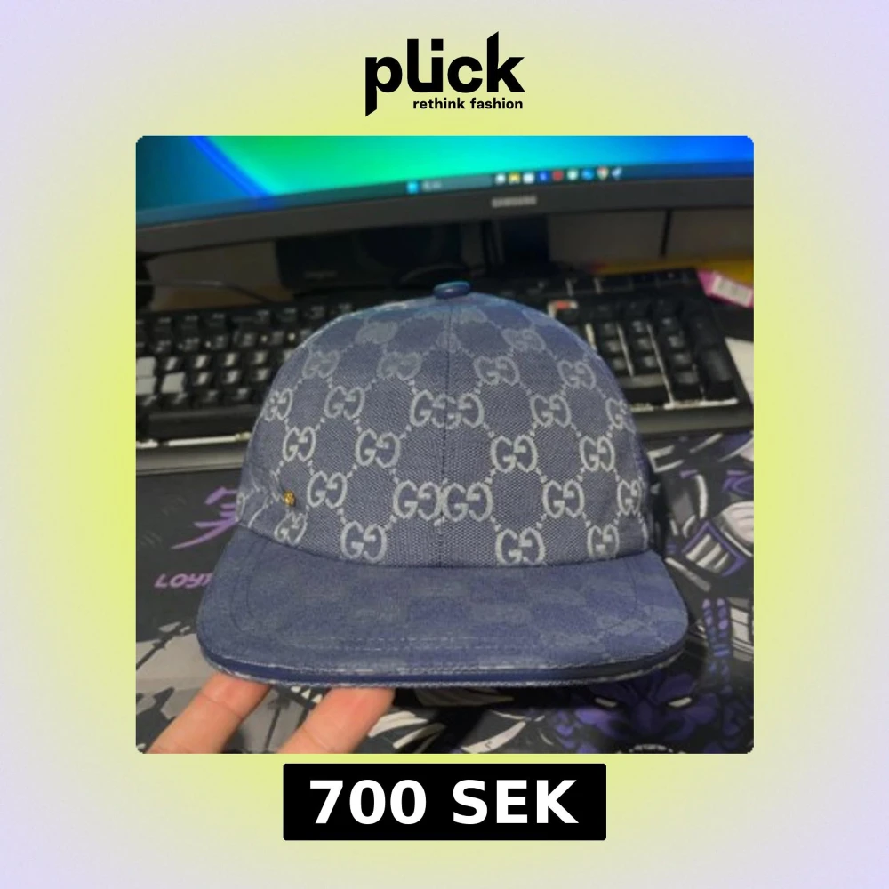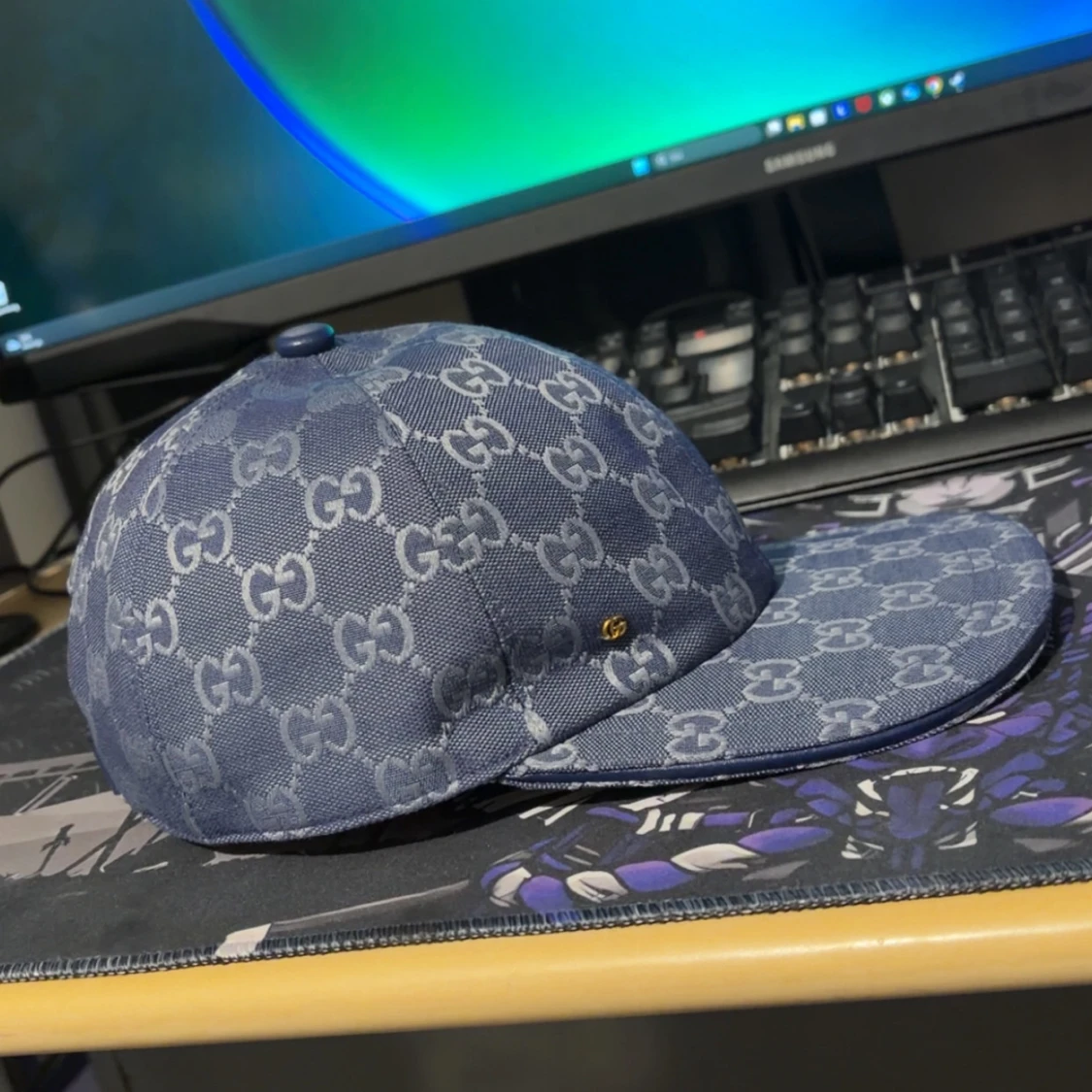 hej, säljer en blå Gucci keps, den är använt 3-4 gånger men är helt ny, storlek M