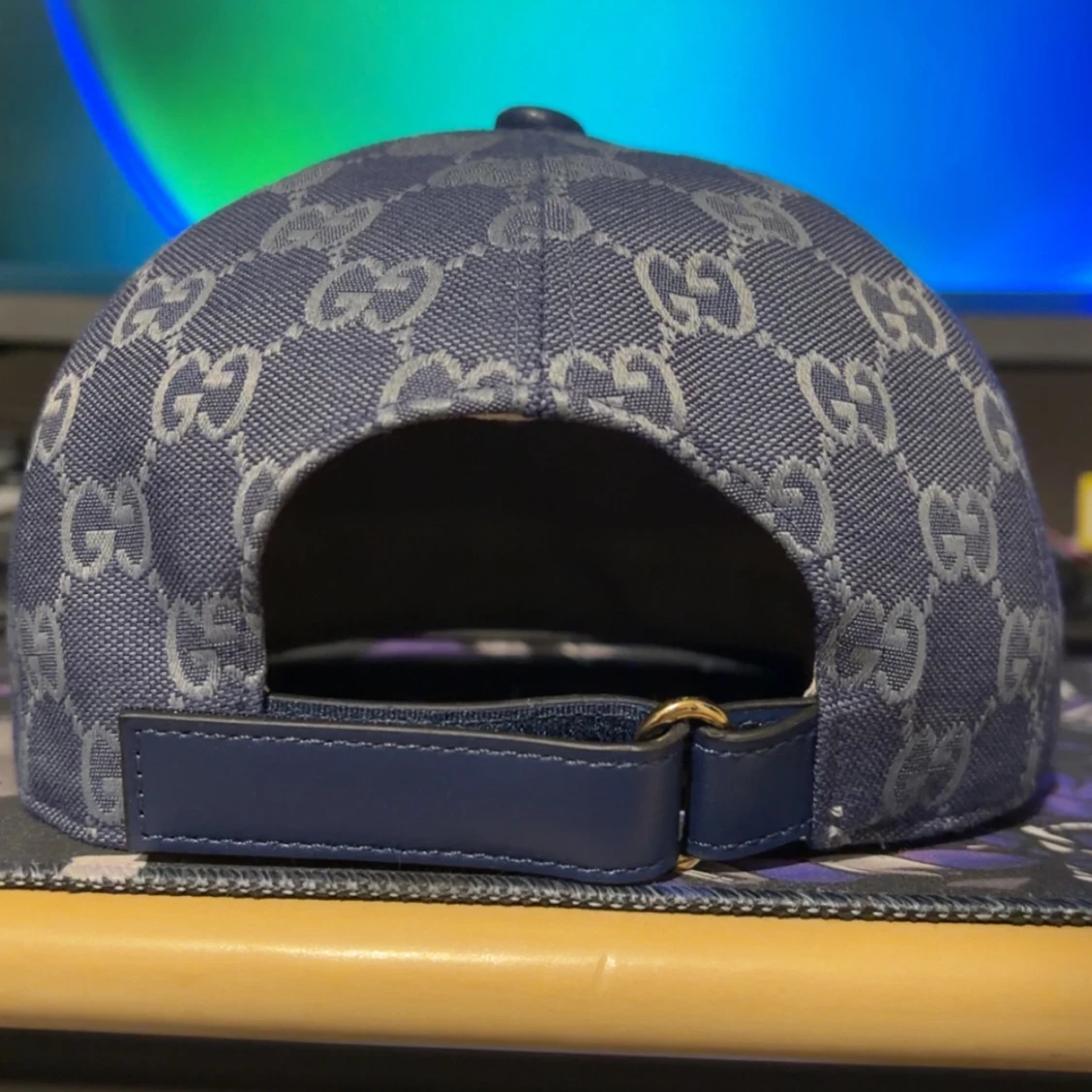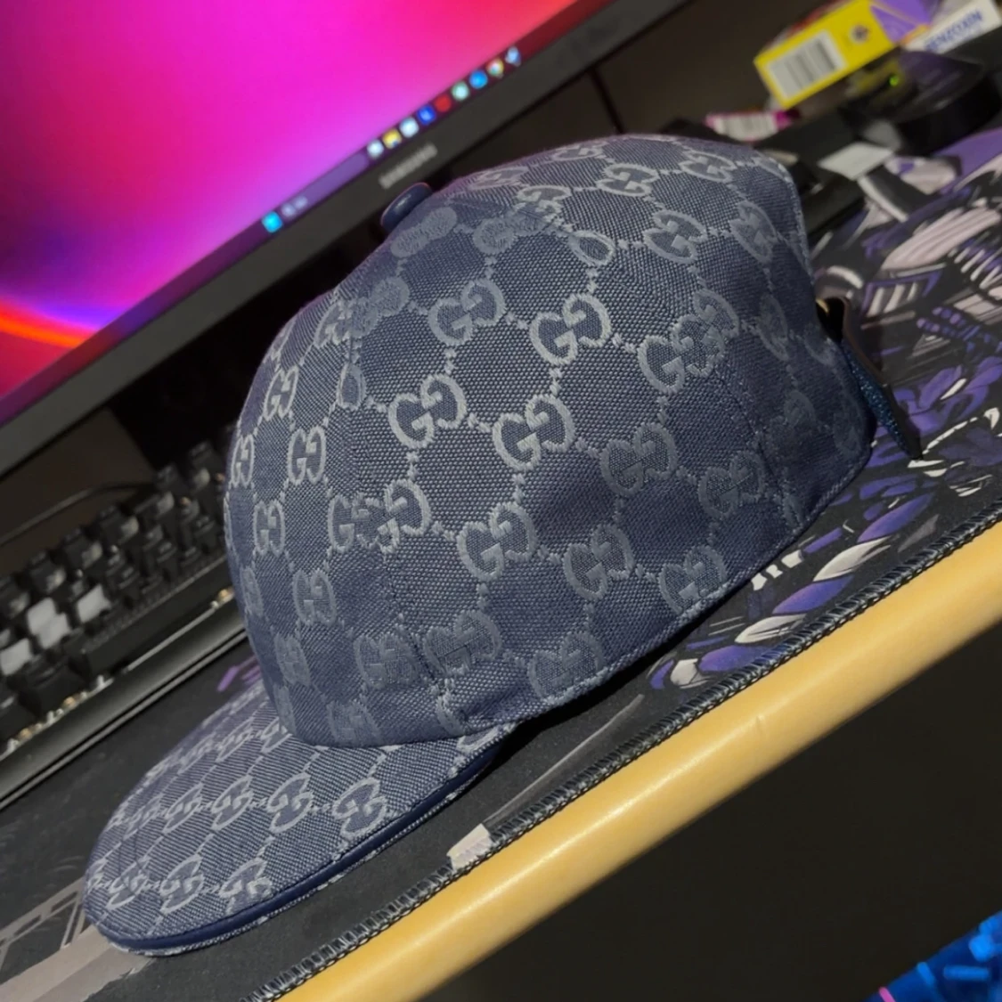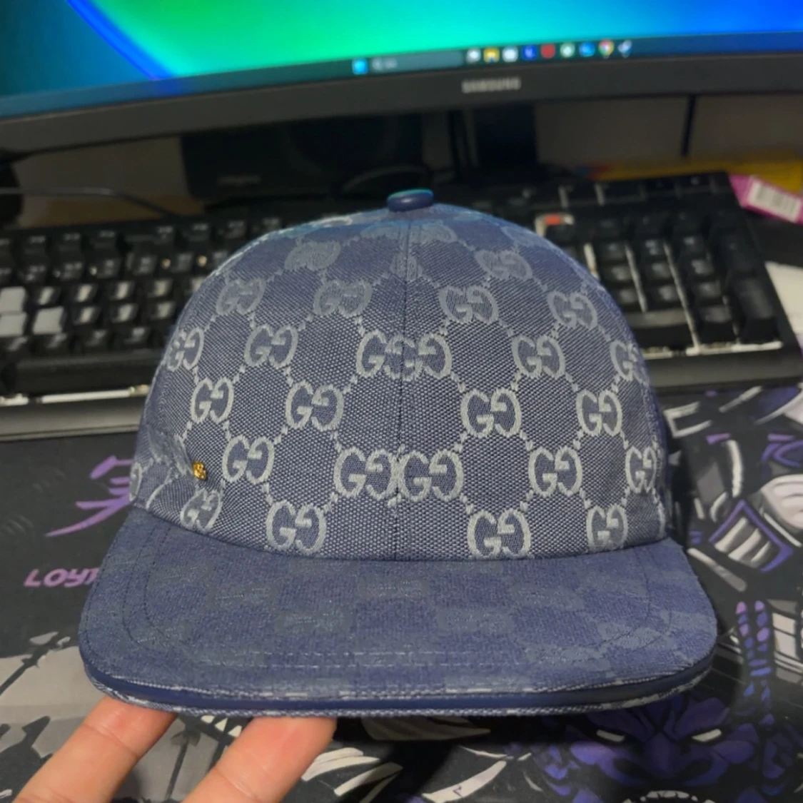hej, säljer en blå Gucci keps, den är använt 3-4 gånger men är helt ny, storlek M