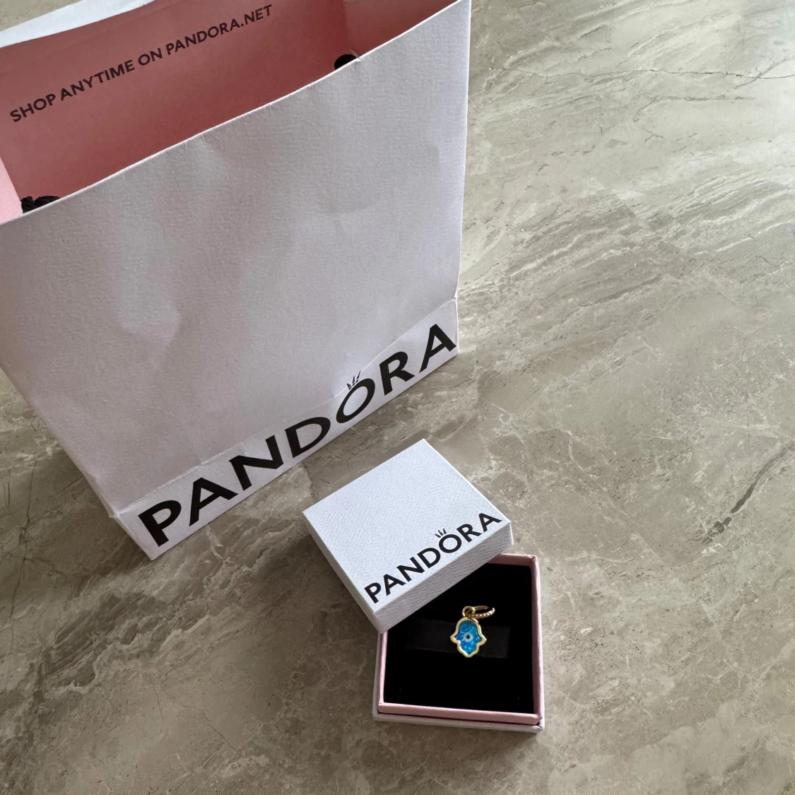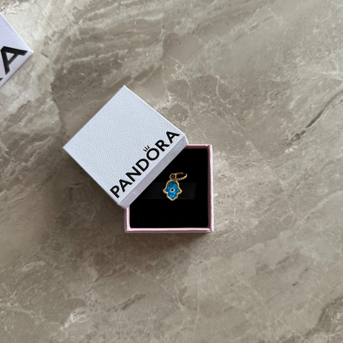 Jättefin berlock i form av en Hamsa hand, från Pandora. Helt ny! Pläterad med 14k guld Originalask + presentpåse medföljer Nypris: 899kr