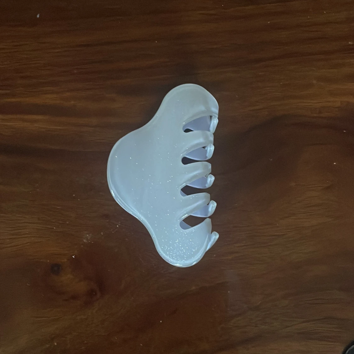Snygg ljusblå hårklämma med glittrig yta.