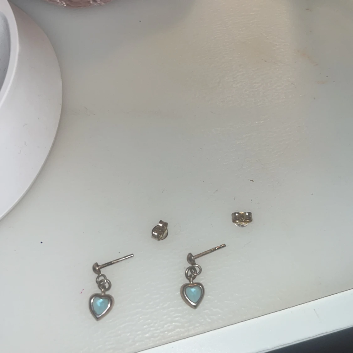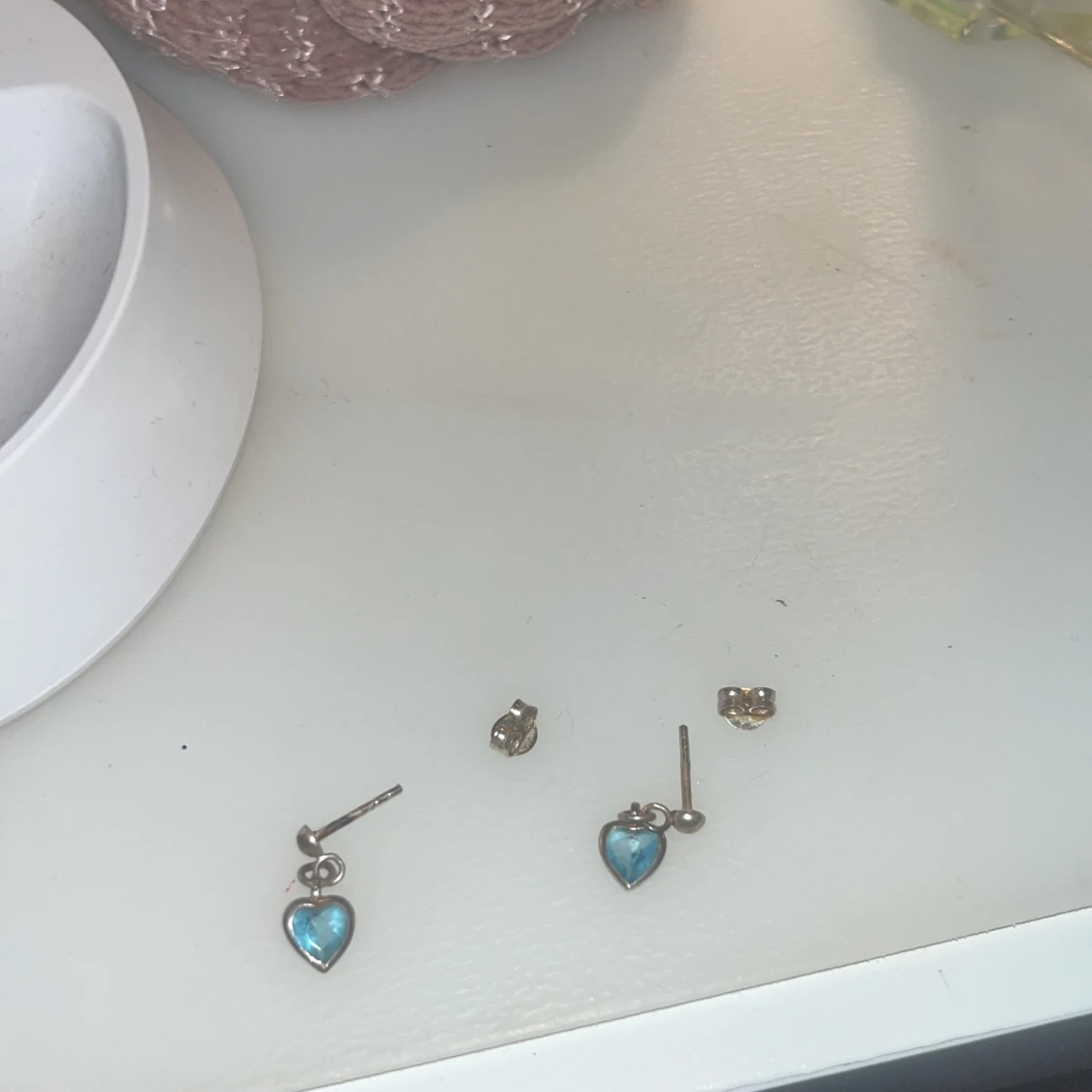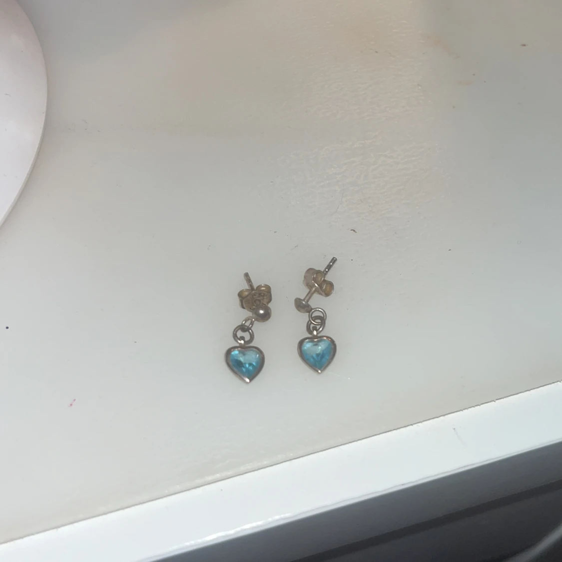 Blå hjrätörhängen, supersöta. Använda men bra skick. Äkta silver. Vet inte Bert de är ifrån. Säljer p.g.a används inte längre. Kolla min profil för bland annat fler smycken❤️