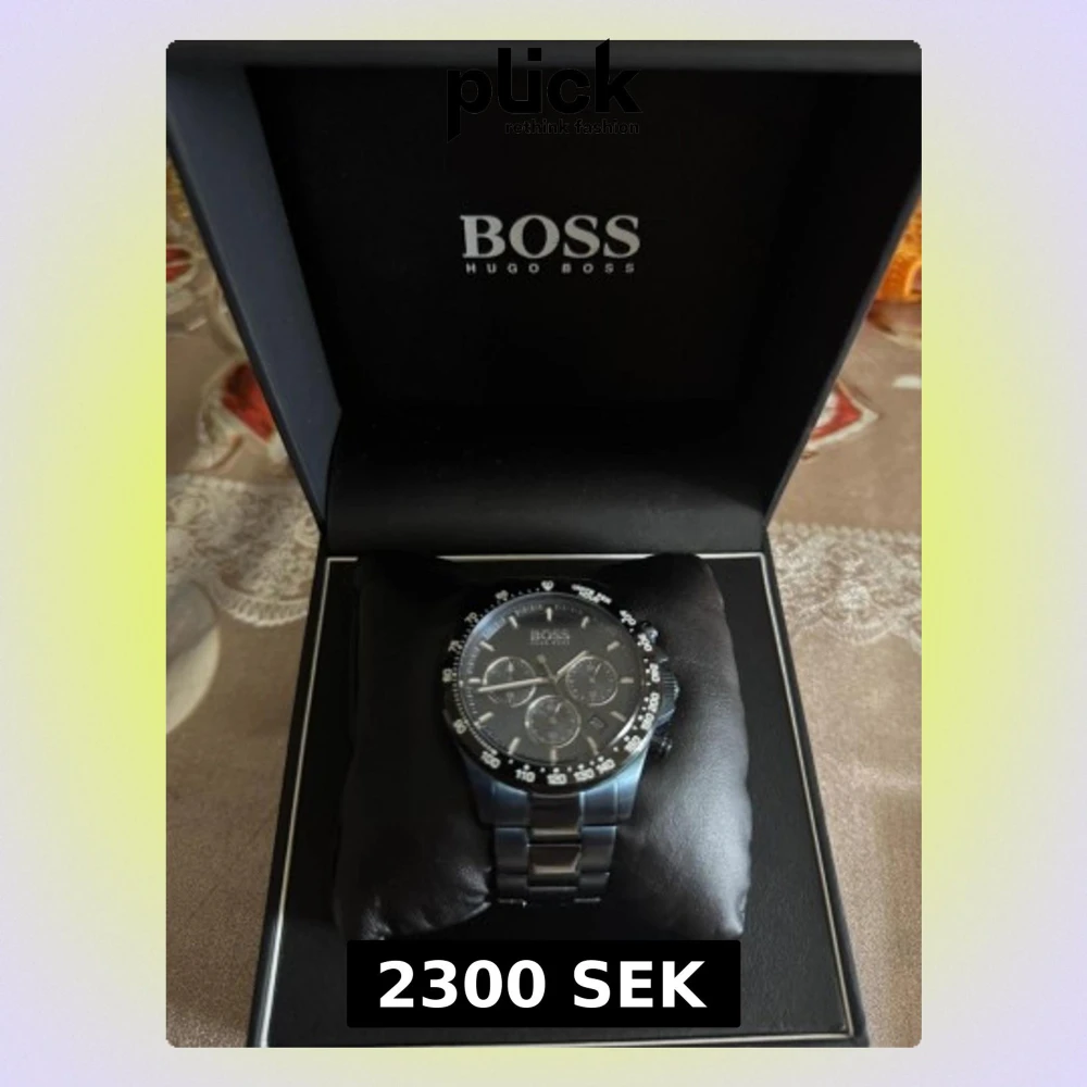 Köpte för 4 k ny, testade den 1 gång men köpte i en annan färg. Snygg och modern Hugo Boss Hero Sport 1513758 klocka med blå urtavla och matchande blå länkarmband i rostfritt stål. Klockan har kronograf, datumvisning och sportig design med tydliga index och detaljer i silver.