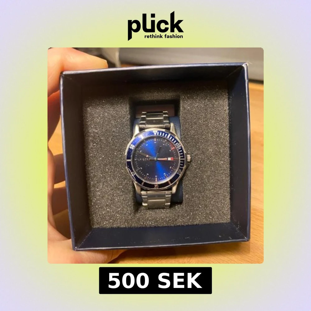 Säljer en snygg pojk klocka från Tommy Hilfiger med blå urtavla och silverfärgat armband i metall. Klockan kommer i originalbilden och 4 extra länkar medföljer. Just nu är den inre omkretsen cirka 14 cm utan länkar