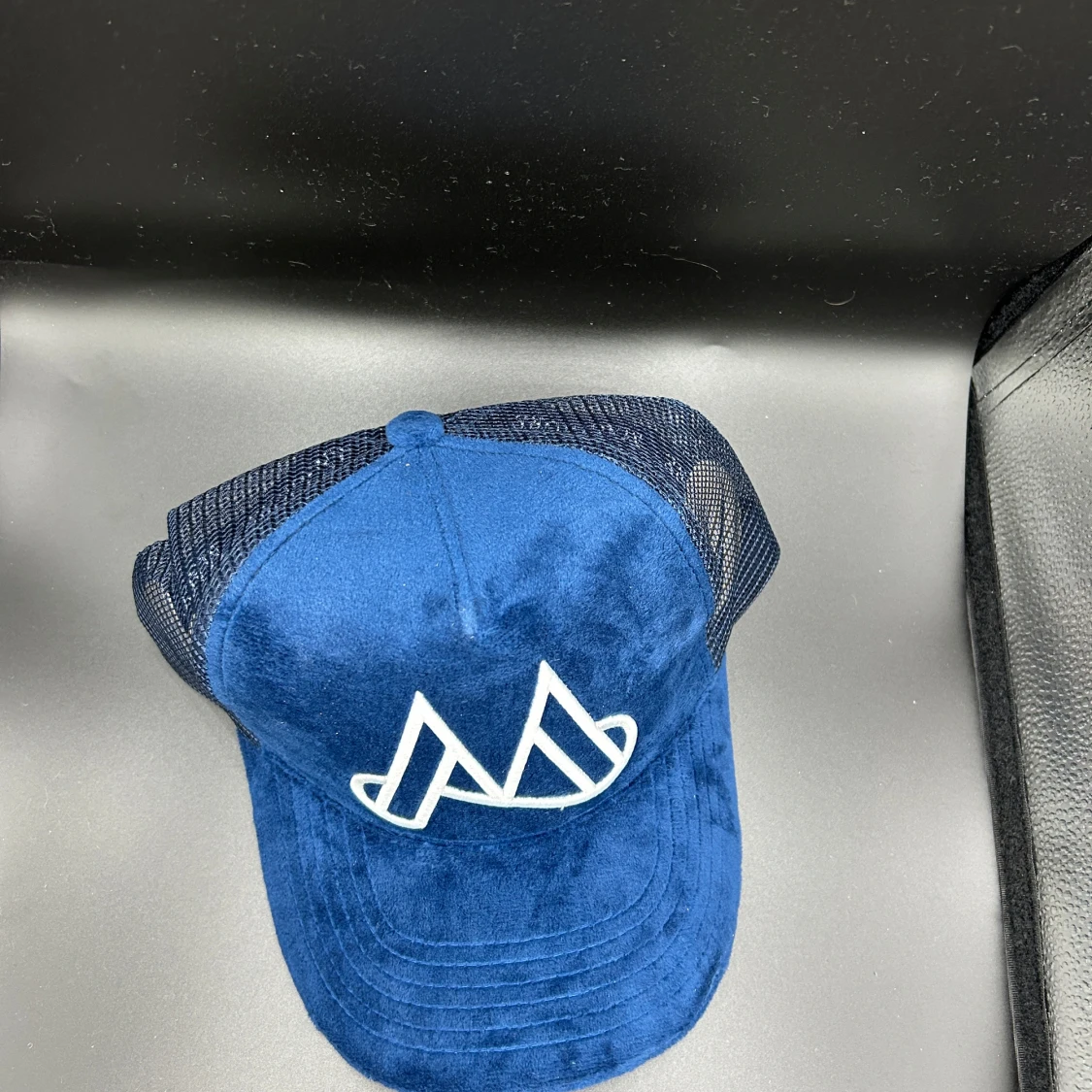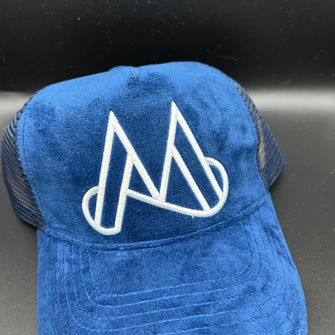Snygg blå keps med framsida i mjuk mocka och mesh på sidorna. Stor vit broderad M-logga framtill ger en cool vibe. Perfekt för dig som gillar streetstyle och vill sticka ut. Justerbar baktill för bästa passform.