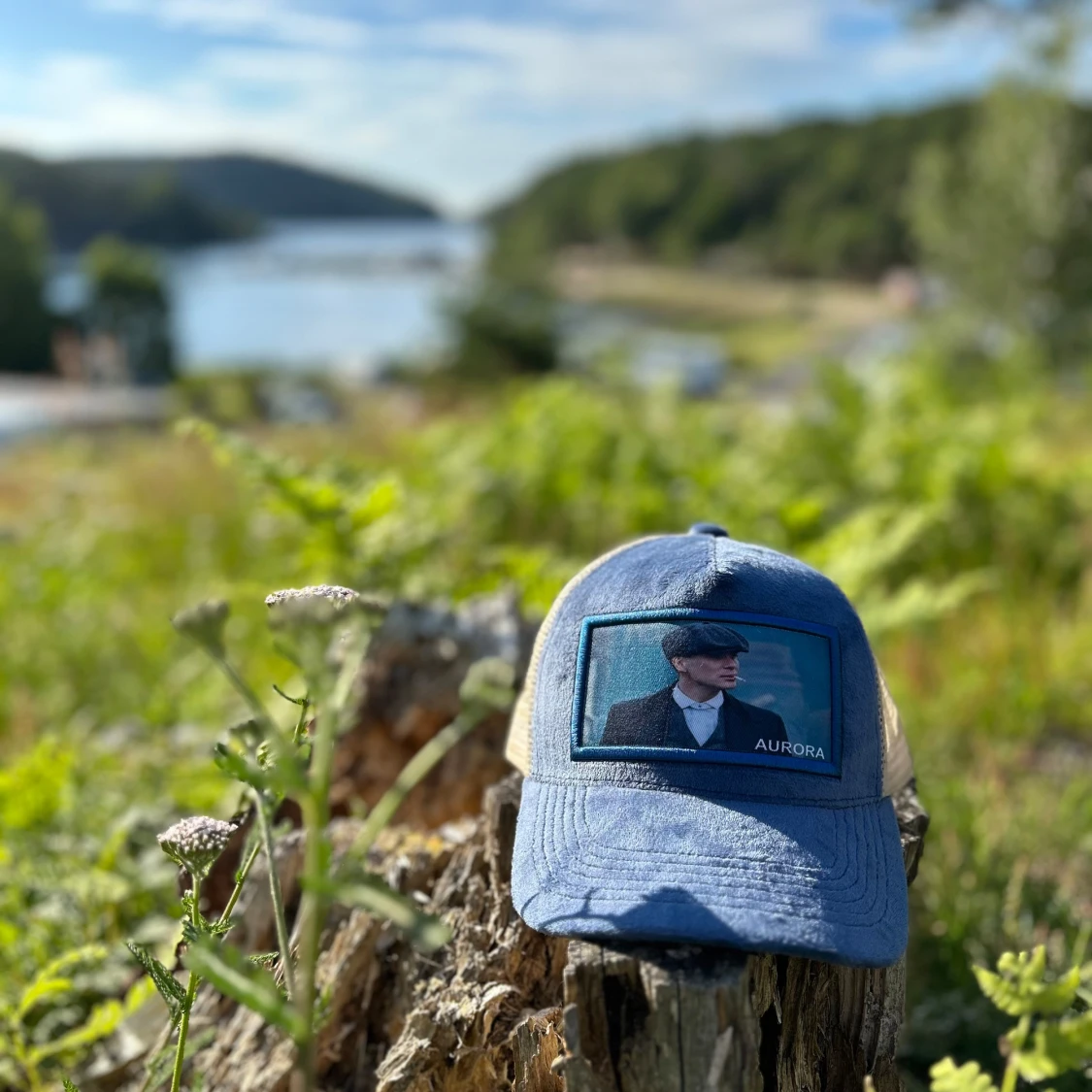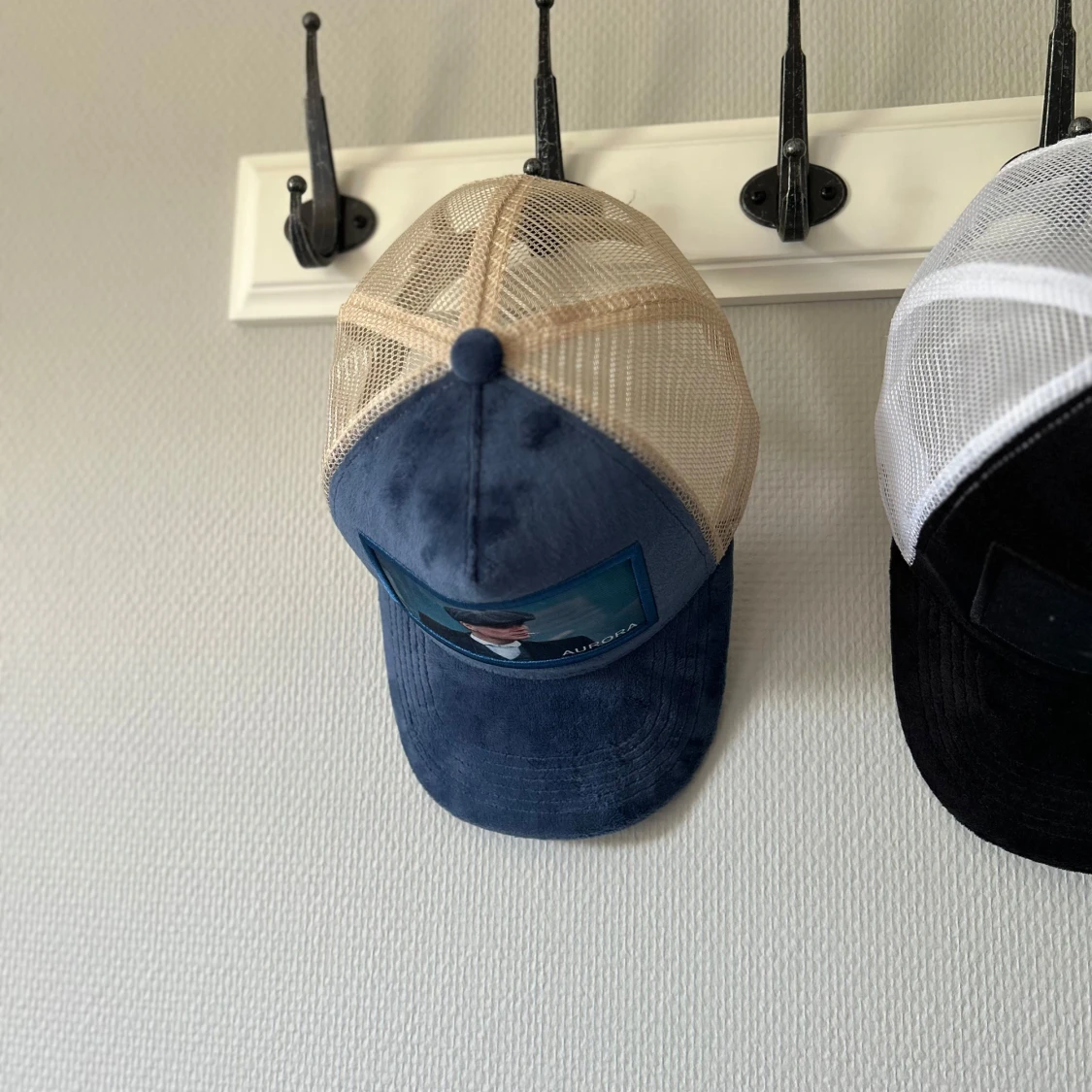 Snygg keps i blått och beige med mesh-bakstycke och ett tryckt motiv framtill. Märkt med Aurora på framsidan. Perfekt accessoar för soliga dagar.