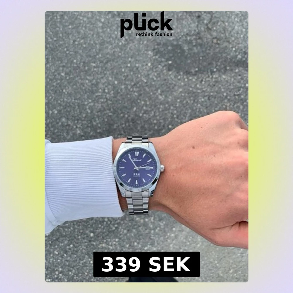 Snygg klocka från Doventi med blå urtavla och silverfärgat armband i metall. Urtavlan har minimalistiska index, datumvisning och tre stjärnor. Klockan har en klassisk rund form och passar perfekt till en clean och modern stil. Går att ändra storlek, finns box.