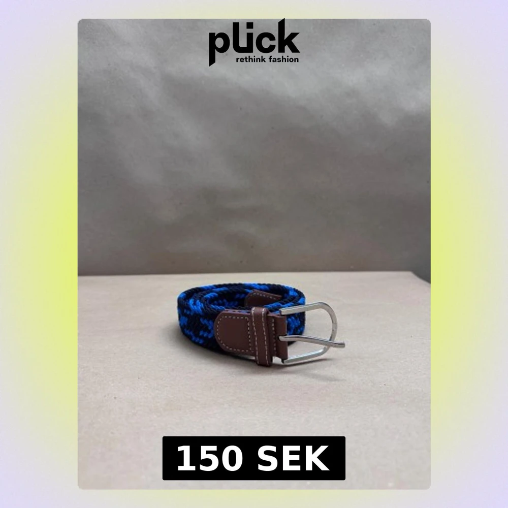 Snyggt flätat bälte i blått och svart med bruna detaljer i skinn och silvrigt spänne. Bältet har ett coolt mönster och är perfekt för att ge din outfit lite extra edge. Passar till jeans eller chinos och är lätt att justera tack vare den flexibla designen.