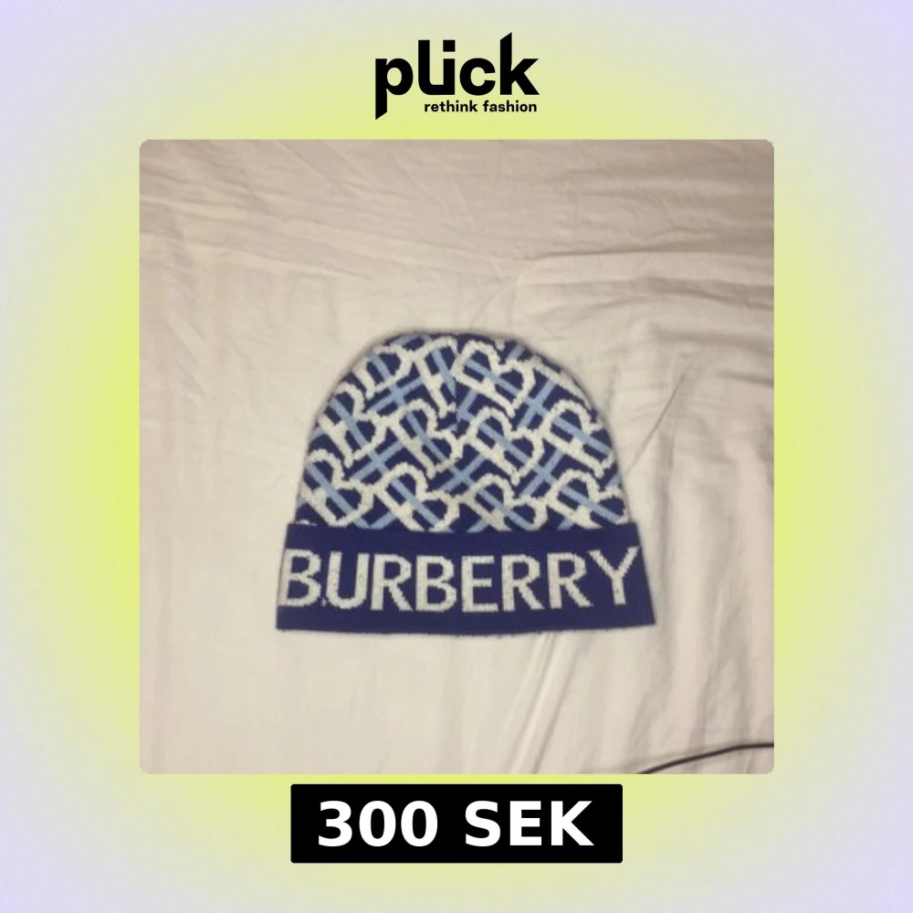 Snygg blå och vit mössa från Burberry med ett unikt mönster och logotyp framtill. Perfekt för att hålla stilen i kallare väder.