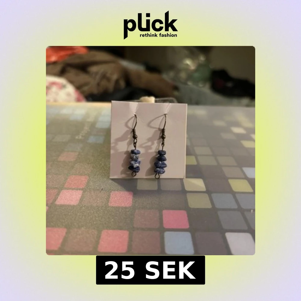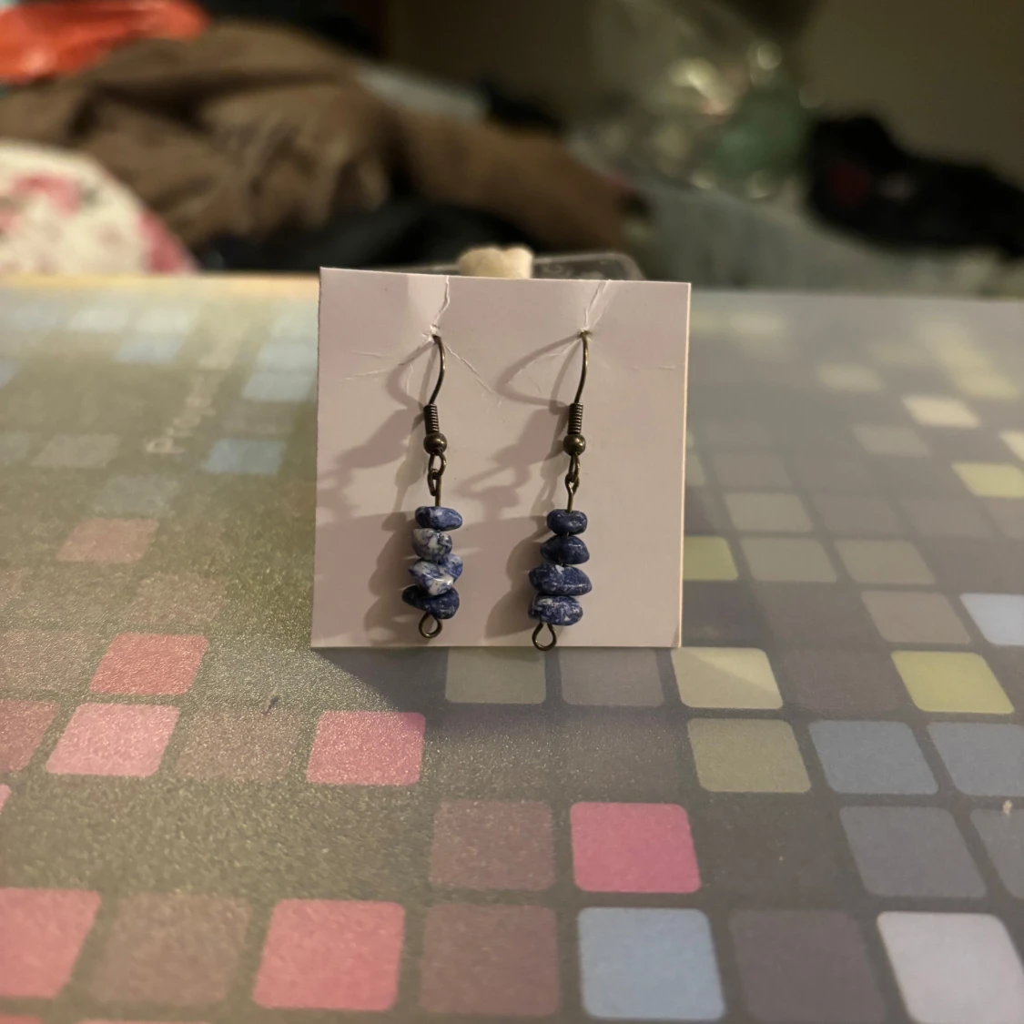 Snygga örhängen med blå stenar i en staplad design. Perfekta för att ge en färgklick till din outfit. De hänger från en enkel krok och är lätta att bära.