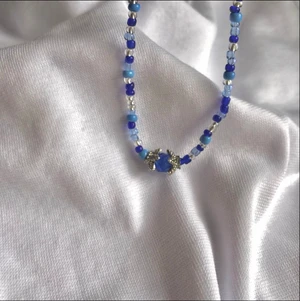 Ett fint blått pärlhalsband som är superfint till en simplare outfit:) finns ett likadant i grönt på profilen