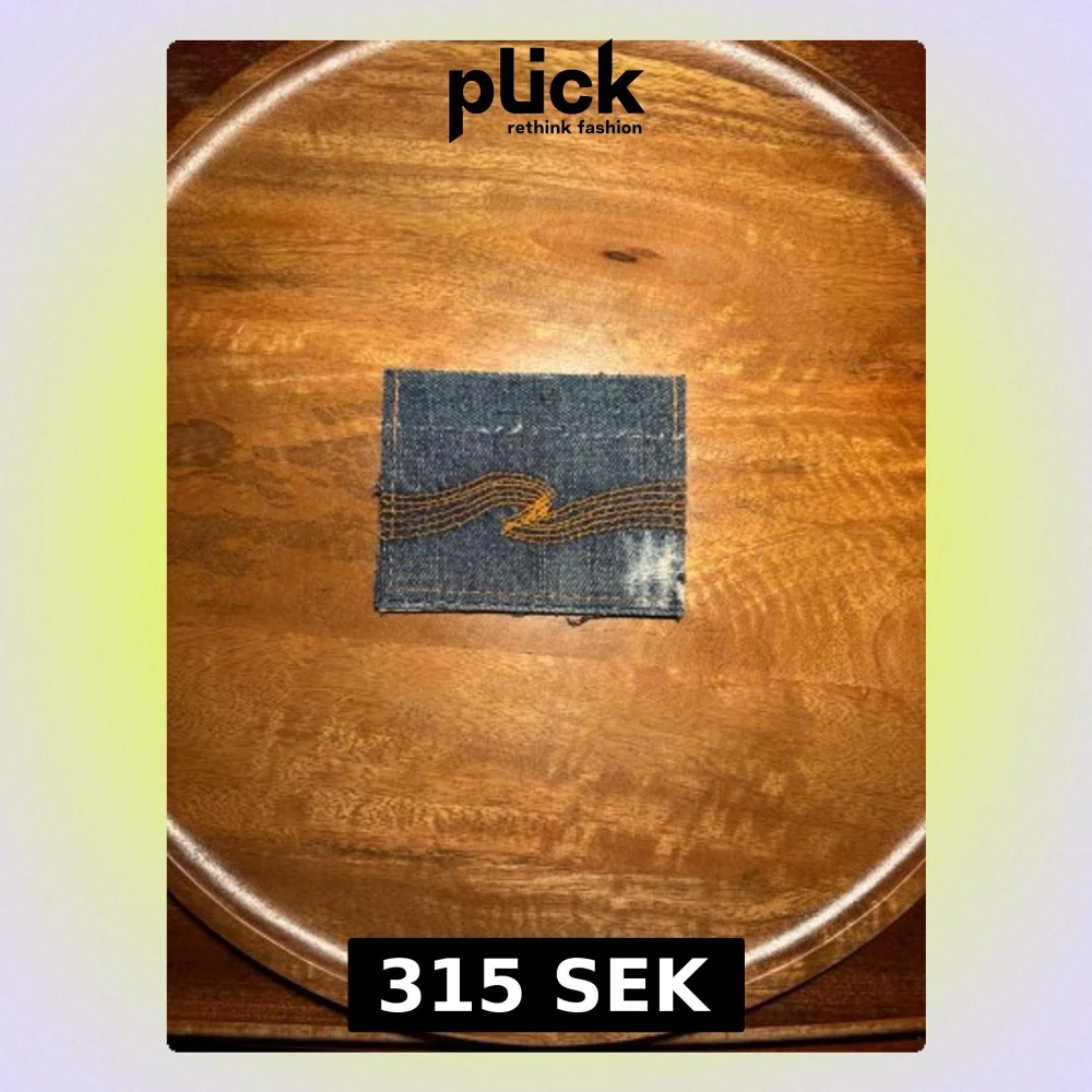 Stilren och hållbar blå denim korthållare med Nudie Jeans brodering. Egendesignad och egentillverkad av 100% autentiskt material. Skriv för mer bilder eller övriga funderingar.