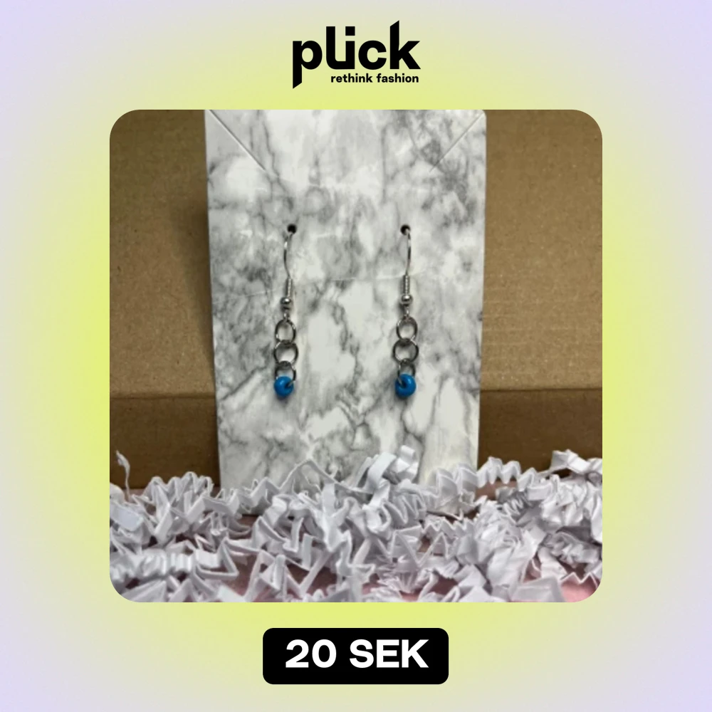 Örhängen med blåa pärlor, ska vara i rostfritt stål.