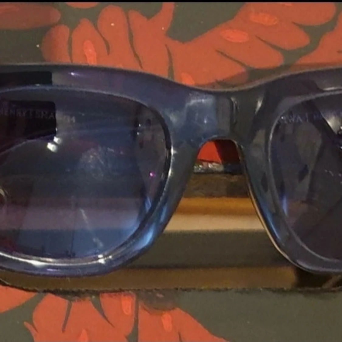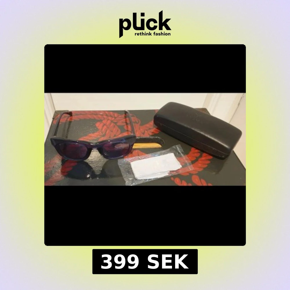 Snygga blå solglasögon från Triwa med rektangulär form och transparent båge. Glasen är mörkblå och bågen är tillverkad i plast. Kommer med original svart fodral och putsduk. Perfekt accessoar för dig som vill ha en cool look.