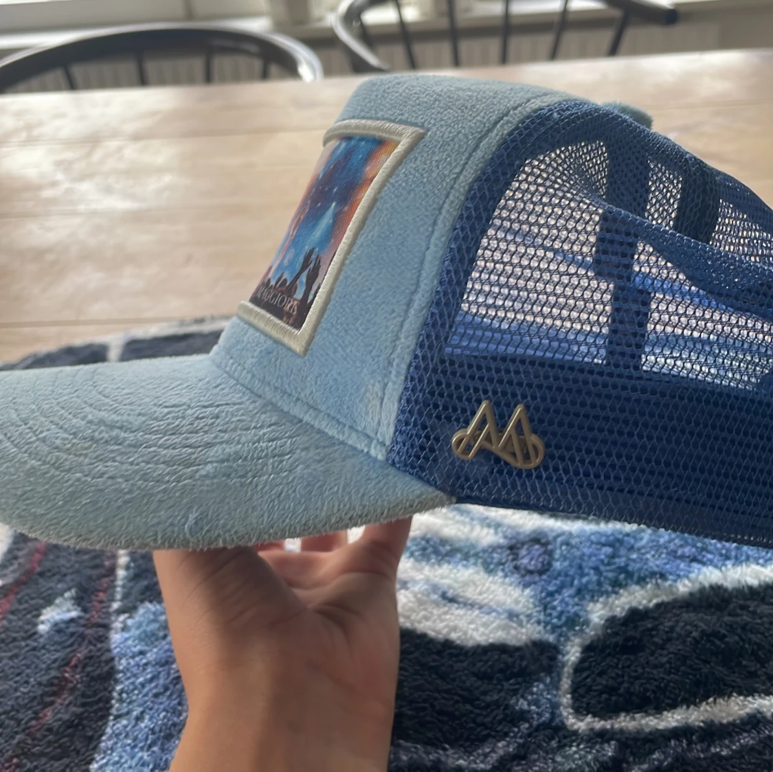 Snygg blå truckerkeps från Maggiore med mesh på sidorna och bak, samt ett coolt tryck framtill med konsertmotiv. Kepsen har böjd skärm och metallogo på sidan. Perfekt för dig som vill sticka ut med en unik accessoar.