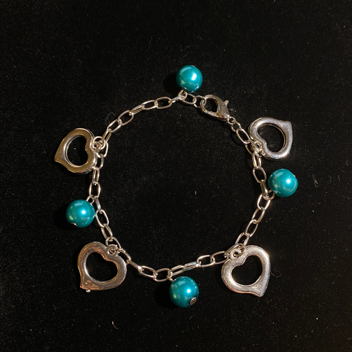 Armband i silver med turkosa pärlor och hjärtan💙 Fri frakt✨