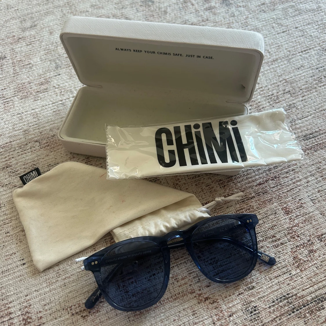 Snygga blåa solglasögon från CHIMI med klassisk rundad form och transparent båge. Kommer med originalfodral, putsduk och tygpåse. Perfekta för att lyfta din stil med en cool touch. Lätta och bekväma att bära hela dagen.