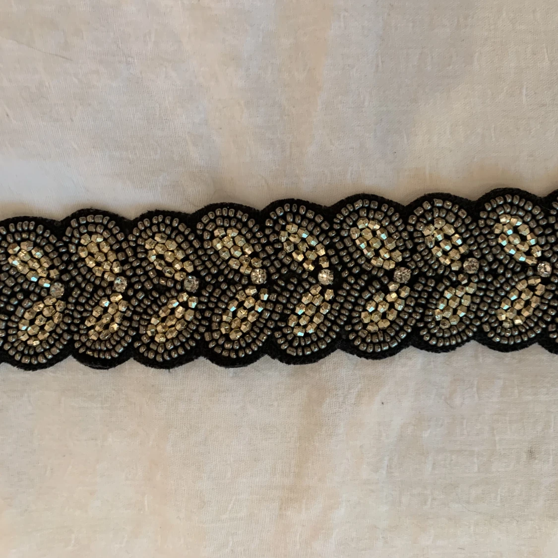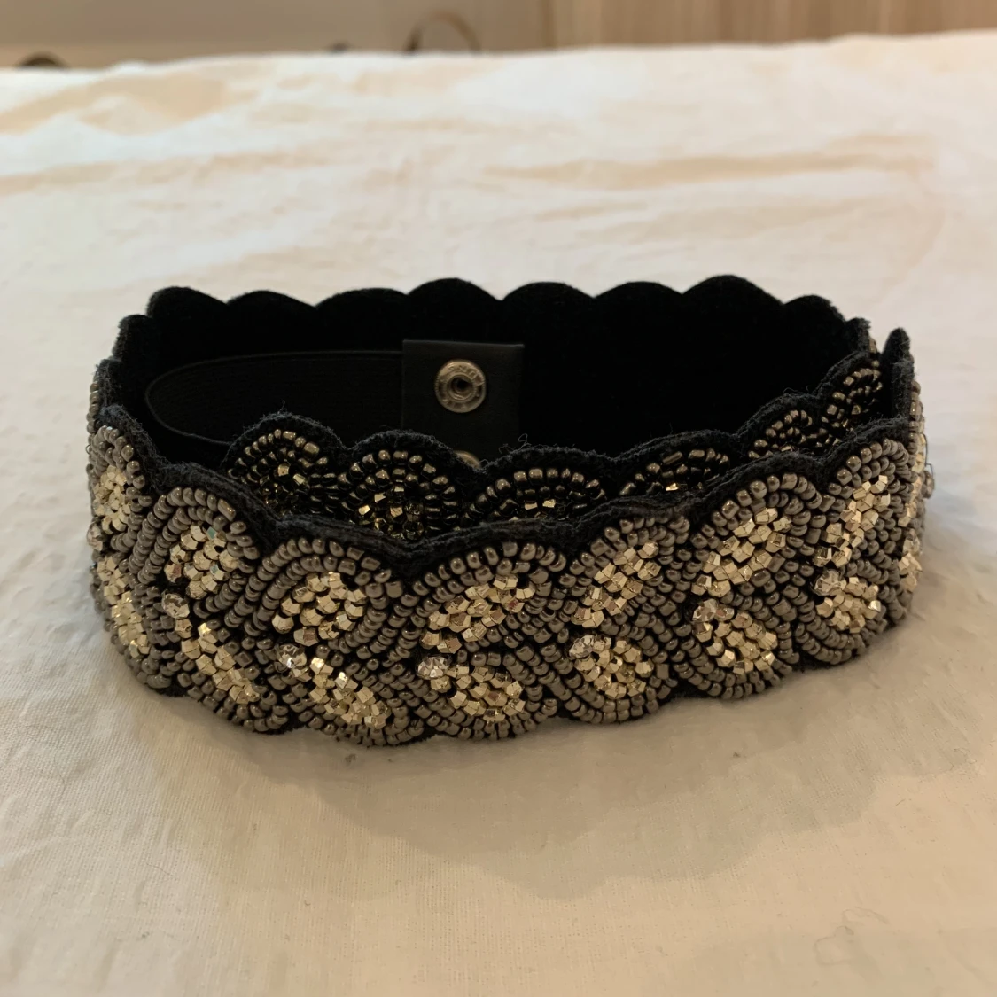 Elastiskt skärp med pärlor och diamanter i mycket bra skick. Knäpps med knappar i 2 olika lägen. 🪩💘🫧