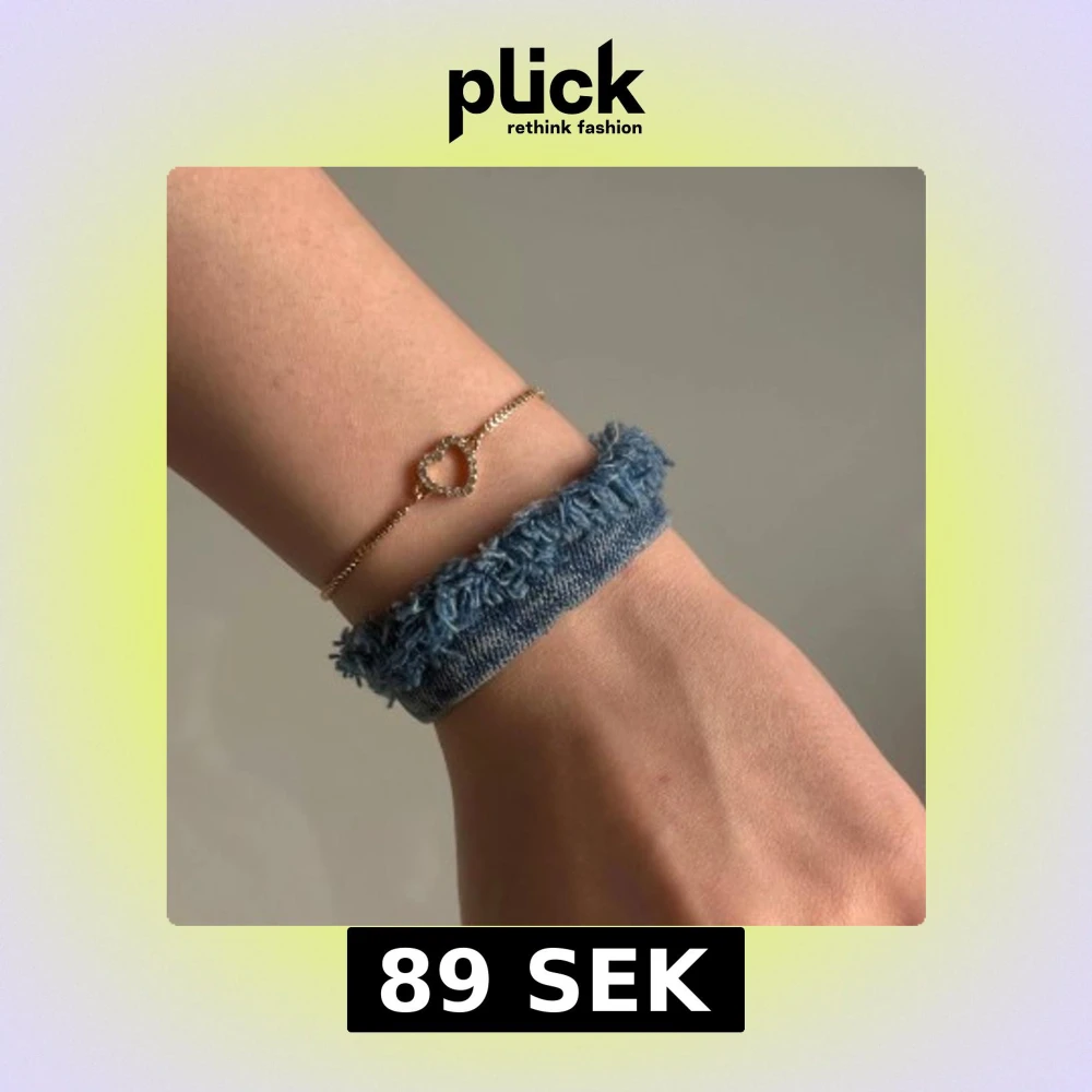 Unikt armband i ljusblått återvunnet jeansmaterial som även är handgjort och dekorerat med silverfärgade metalldetaljer i rostfritt stål. Armbandet har en justerbar kedja för perfekt passform och själva jeansdelen är 15 cm lång. Kolla gärna in vår instagram: Jeanfluence.uf