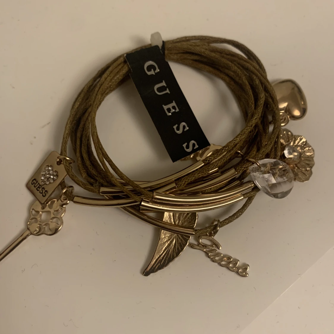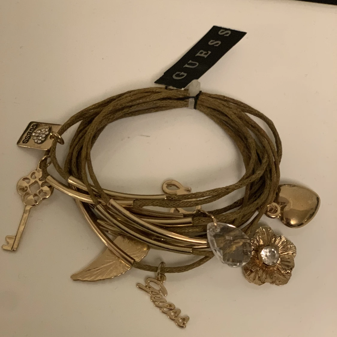 Oanvänd guess armband med massor med berlocker.
