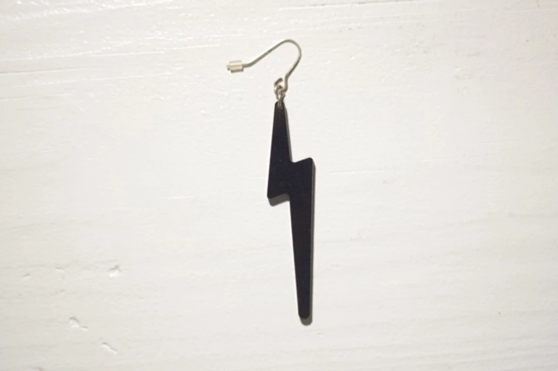 Svart blixt örhänge sex cm långt i glansig plast. Bara att fråga om ni undrar något! Frakt 28kr