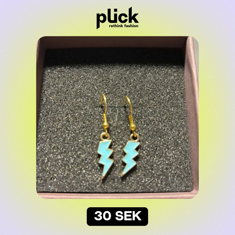 Säljer ett par coola örhängen i form av blixtar. De är i en snygg kombination av guld och turkos, vilket ger dem en unik och trendig look. Perfekta för att liva upp vilken outfit som helst!💙😇