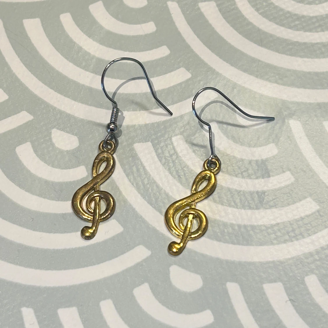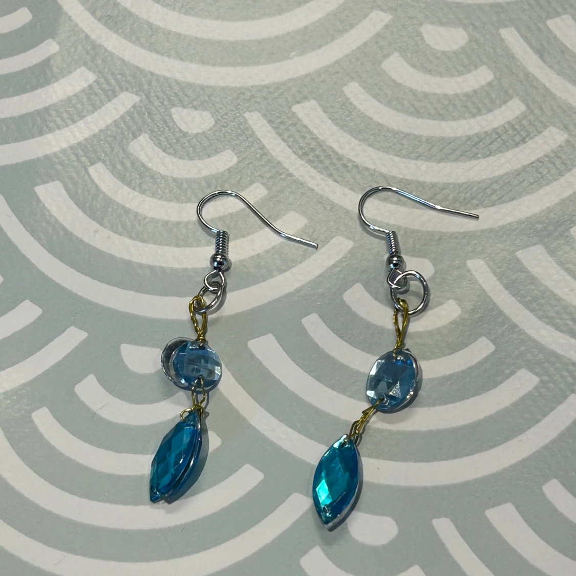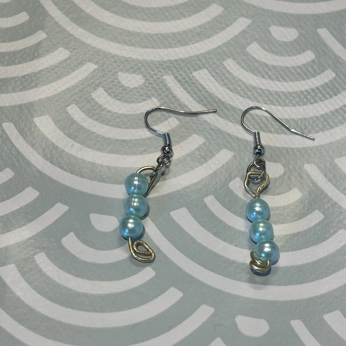 Blå pärlor, blå ädelstenar, guldiga G klavar, Köp ett par för 12kr och alla tre par för 30kr. INTE NICKELFRIA!!