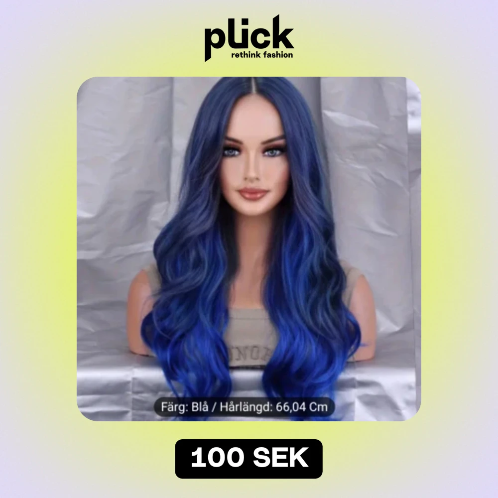 En lång blå peruk som passar super till cosplay (närcon?)💖 Hårnät ingår i priset! Jag köpte den till en maskerad, men använde aldrig. Inte ens provad eller öppnad förpackning på peruk eller hårnät!