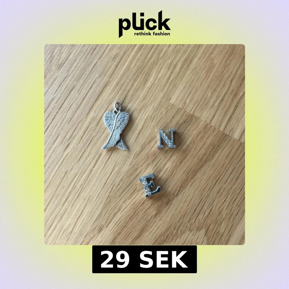 Silverfärgad (ej äkta) berlock med bokstaven E, dekorerad med stenar. Perfekt för att personalisera ditt armband eller halsband. Märket är okänt.