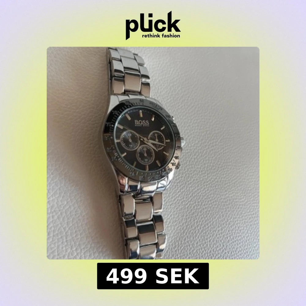 Elegant silverfärgad klocka från Boss med en stilren design. Klockan har en svart urtavla med flera sub-dials och en robust länkarmband i rostfritt stål. Perfekt för den som söker en tidlös accessoar.