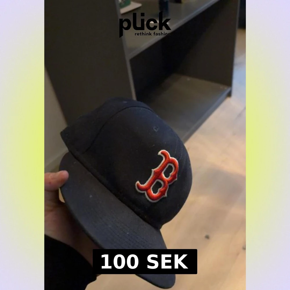 Säljer en svart Boston Red Sox keps från New Era, modell 59FIFTY. Kepsen har ett rött och vitt B broderat framtill och klassiska MLB-loggor på sidan och bak. Materialet är bomull och polyester, med en platt skärm och normal passform.