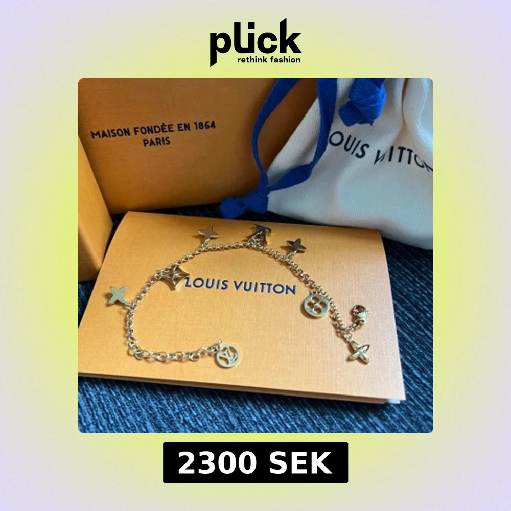 Superfint armband från Louis Vuitton i guldtonad metall med flera ikoniska LV-berlocker och blommor. Kedjan är tunn och smidig, och berlockerna har både logga och klassiska former. Kommer med originalask, påse och kvitto.