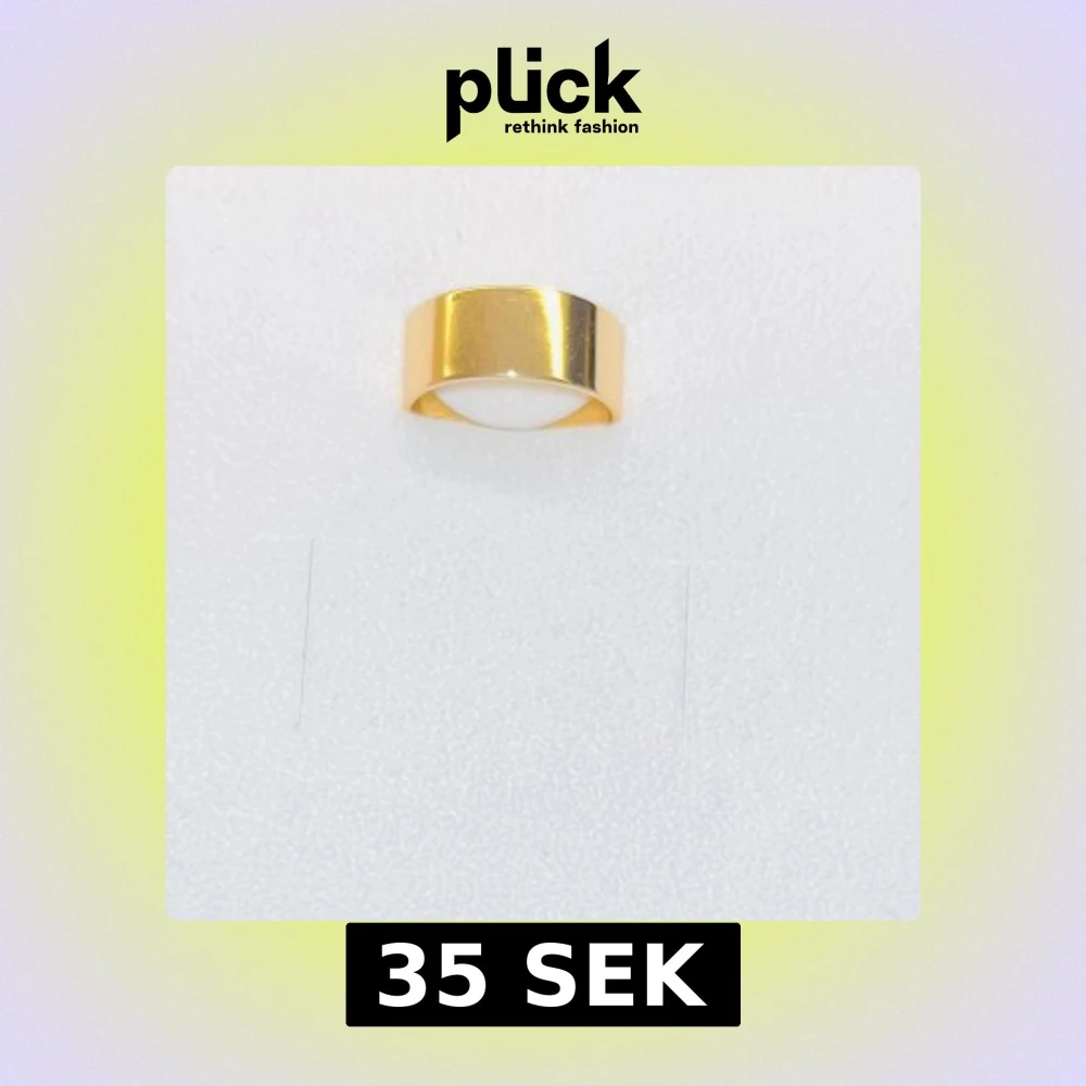 Enkel och stilren bred ring i guldpläterad metall. Ringen har en slät, blank yta och är öppen baktill för justerbar passform. Perfekt för dig som gillar minimalistiska smycken med modern känsla.