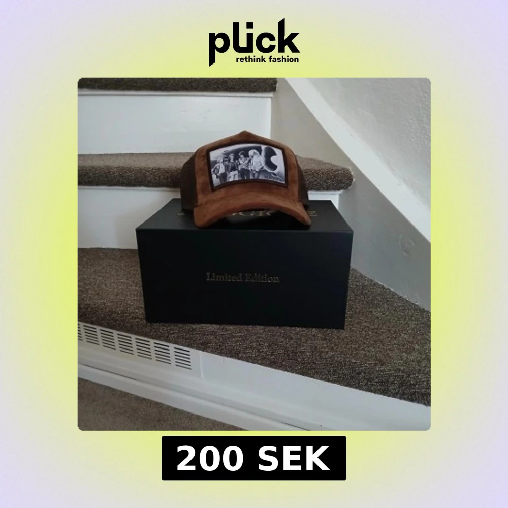 Säljer en brun keps från Madoura Limited Edition med vintageinspirerad svartvit patch framtill som visar ett coolt motiv. Kepsen har klassisk form med böjd skärm och mesh på sidorna för extra ventilation. Perfekt accessoar för en unik streetstyle.