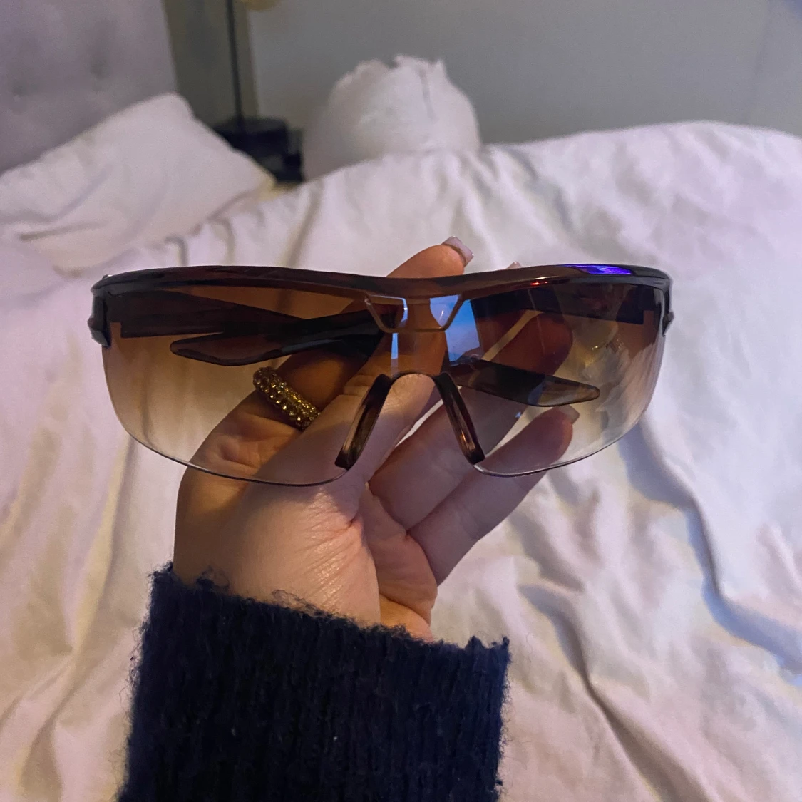 Oanvända solglasögon med fördral till, se produktbild ( 3e) . Kommer från shein , inga defekter .
