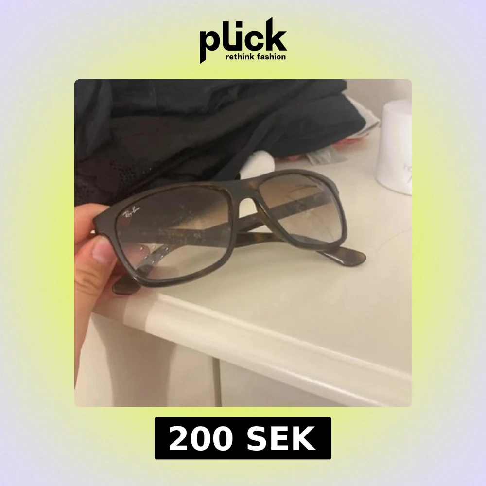 Snygga solglasögon från Ray-Ban med brunmelerad båge och fyrkantig form. Klassisk logga på både glas och skalmar. Perfekta för att lyfta din stil med en tidlös vibe. I sådär skick. Skrik om ni har nån fråga